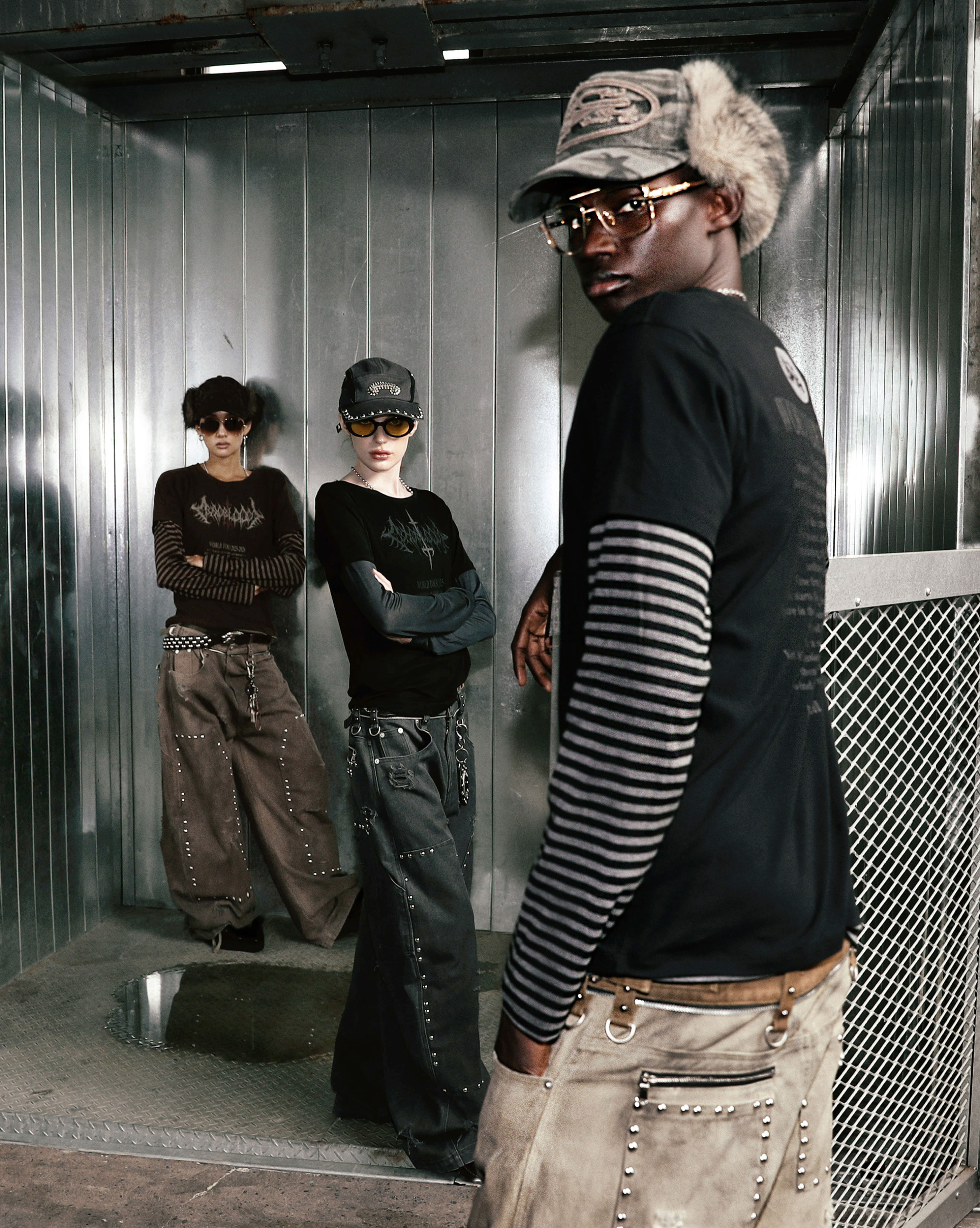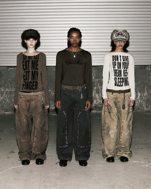 [w-pts25-082] Studded Carpenter Curved Pants - Brown