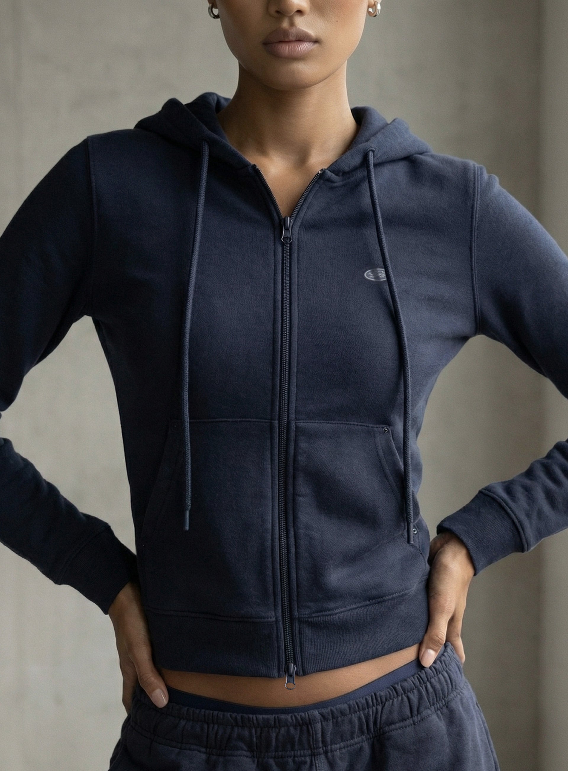 [w-hde26-009] BS Soft Terry Zip-Up Hoodie - Navy