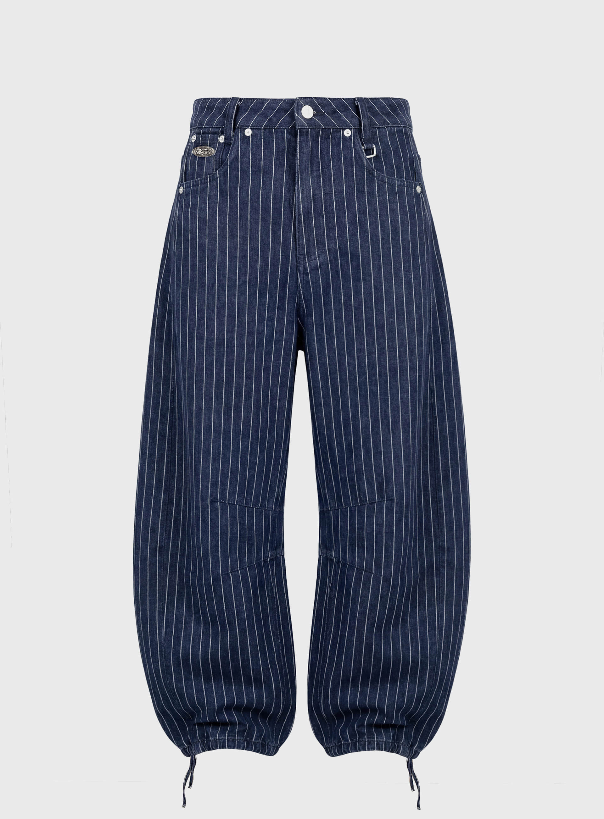 [w-pts25-106] 0519 Shinchiback Curved Pants - Blue/Striped
