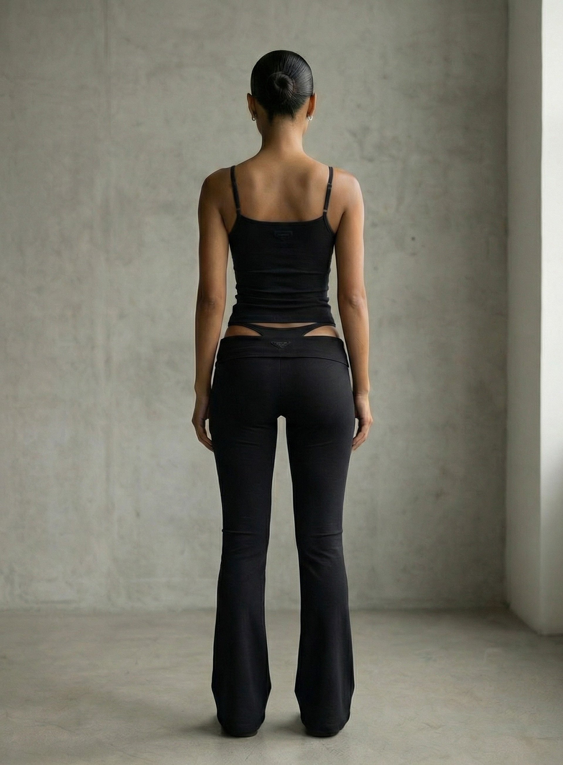 [w-pts26-030] BS Cotton Jersey Essential Fold-Over Bootcut Pants - Black