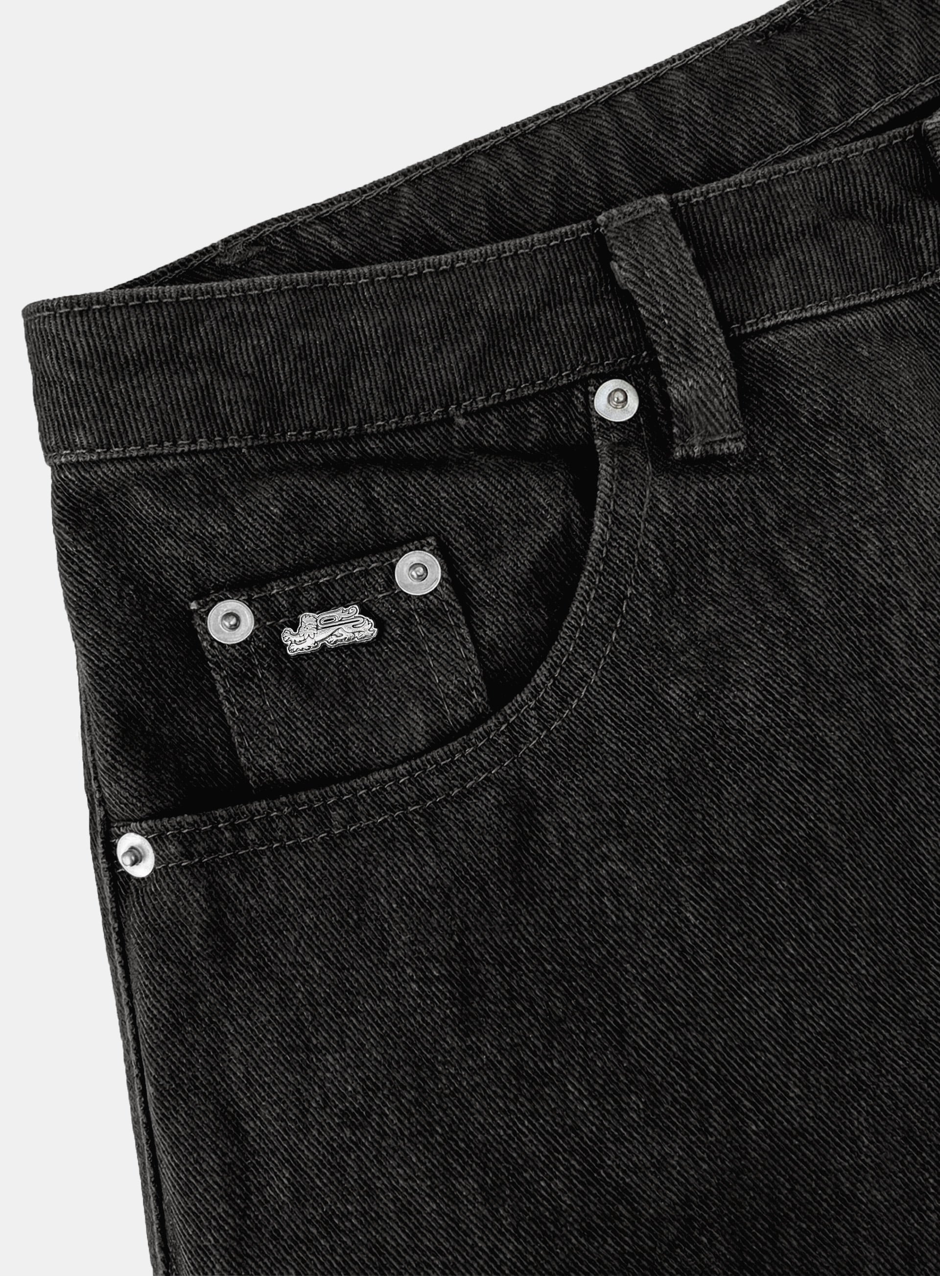 後口袋金屬獅頭鉚釘細節