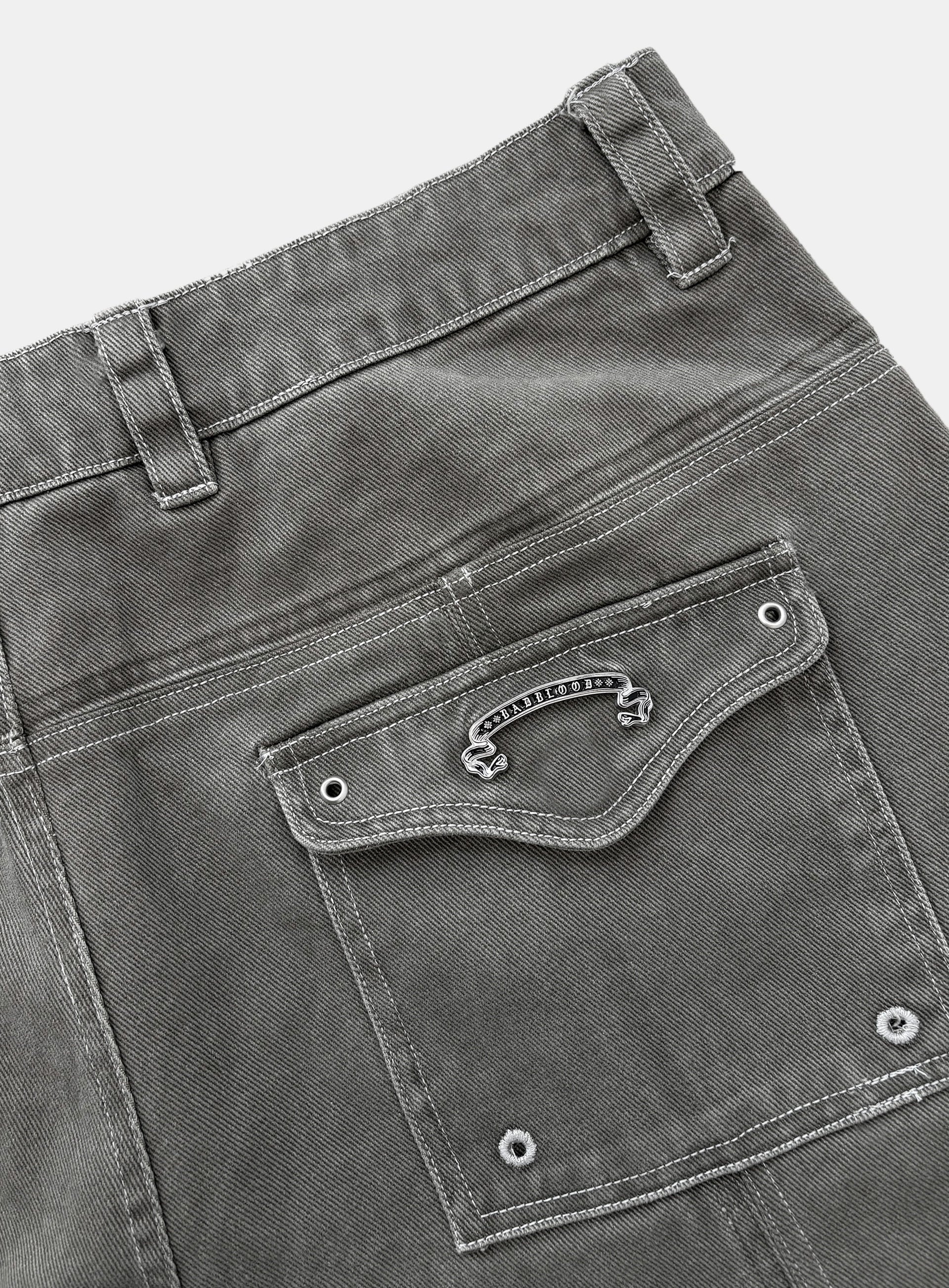 後側口袋飾有金屬孔眼(Eyelet)細節,並搭配前後拼接剪裁設計。
