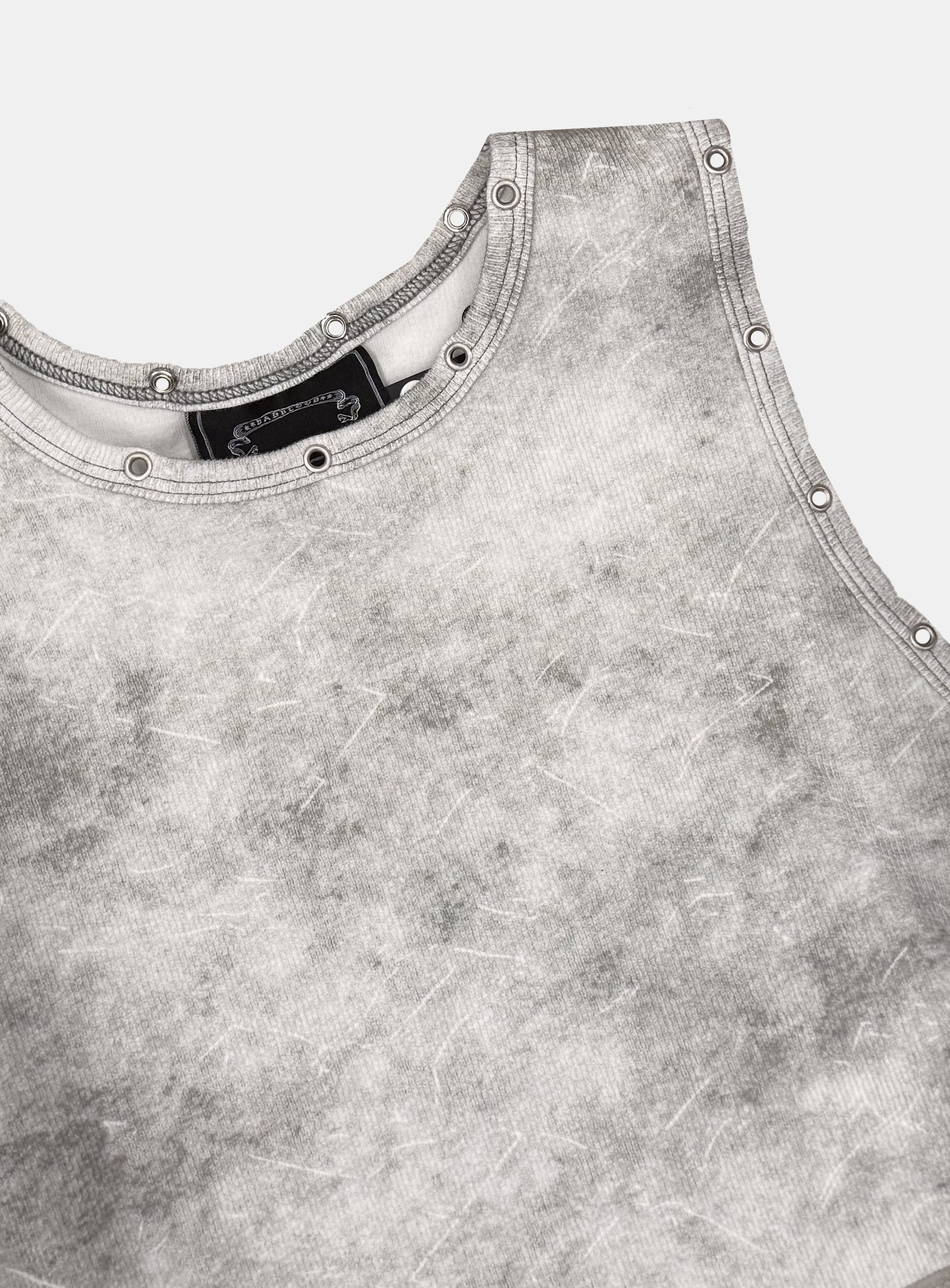 搭配領口金屬孔眼細節作為亮點的 Viper Cotton Rib Asymmetric Top。