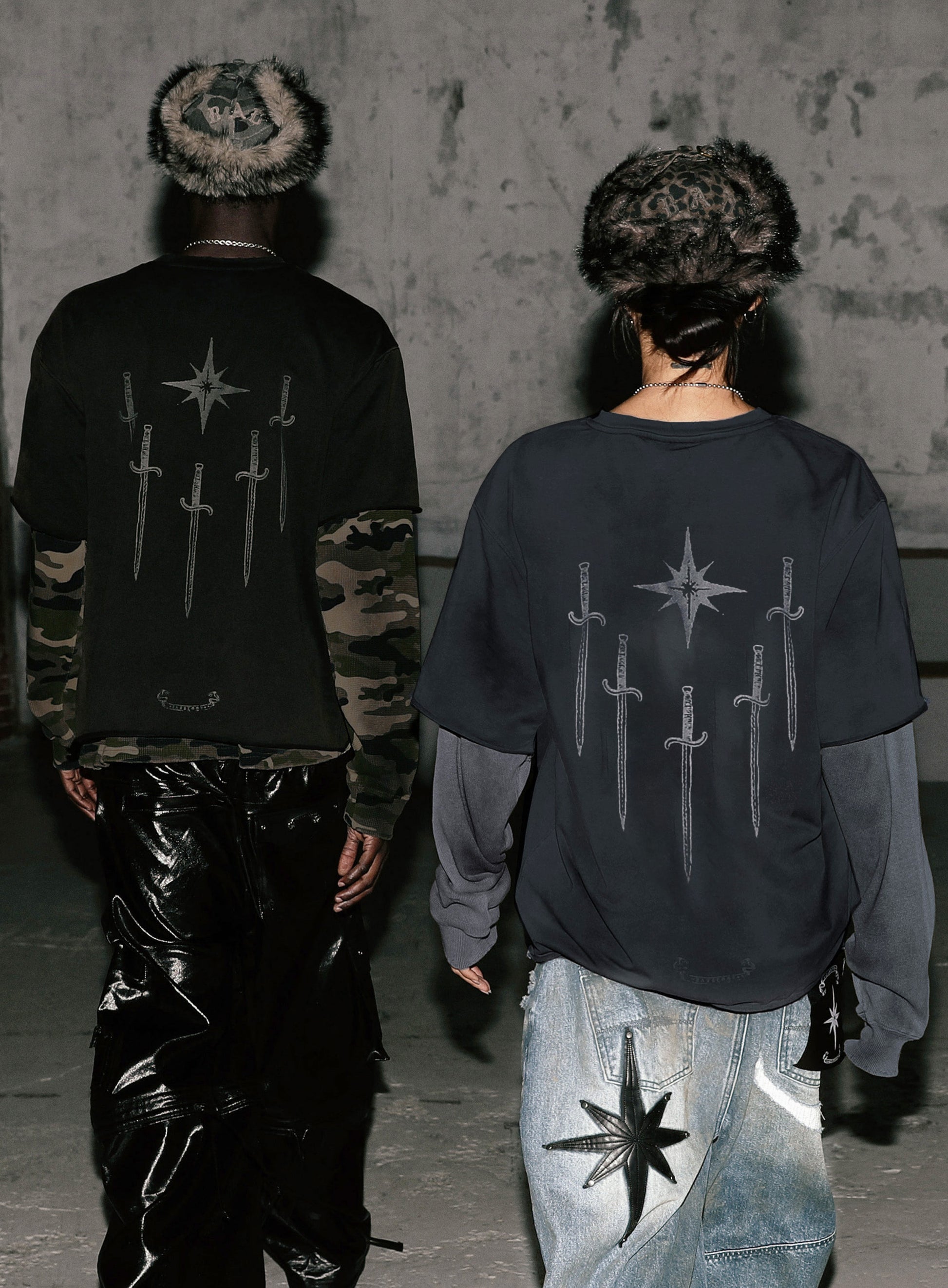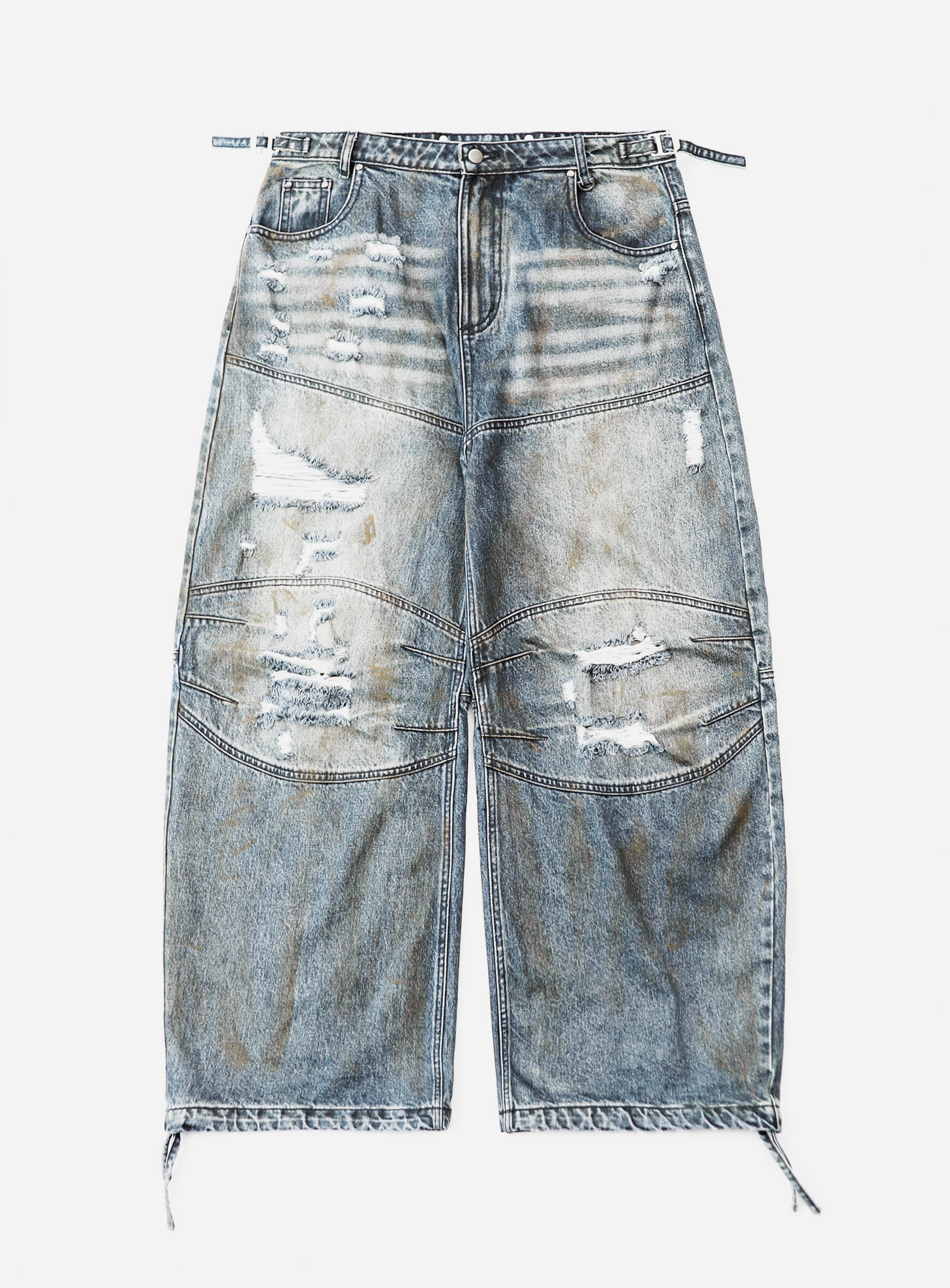 擁有Convex細節與前後破舊損壞細節,並以復古洗水處理為亮點的0409 Cosmo Convex Denim Pants。