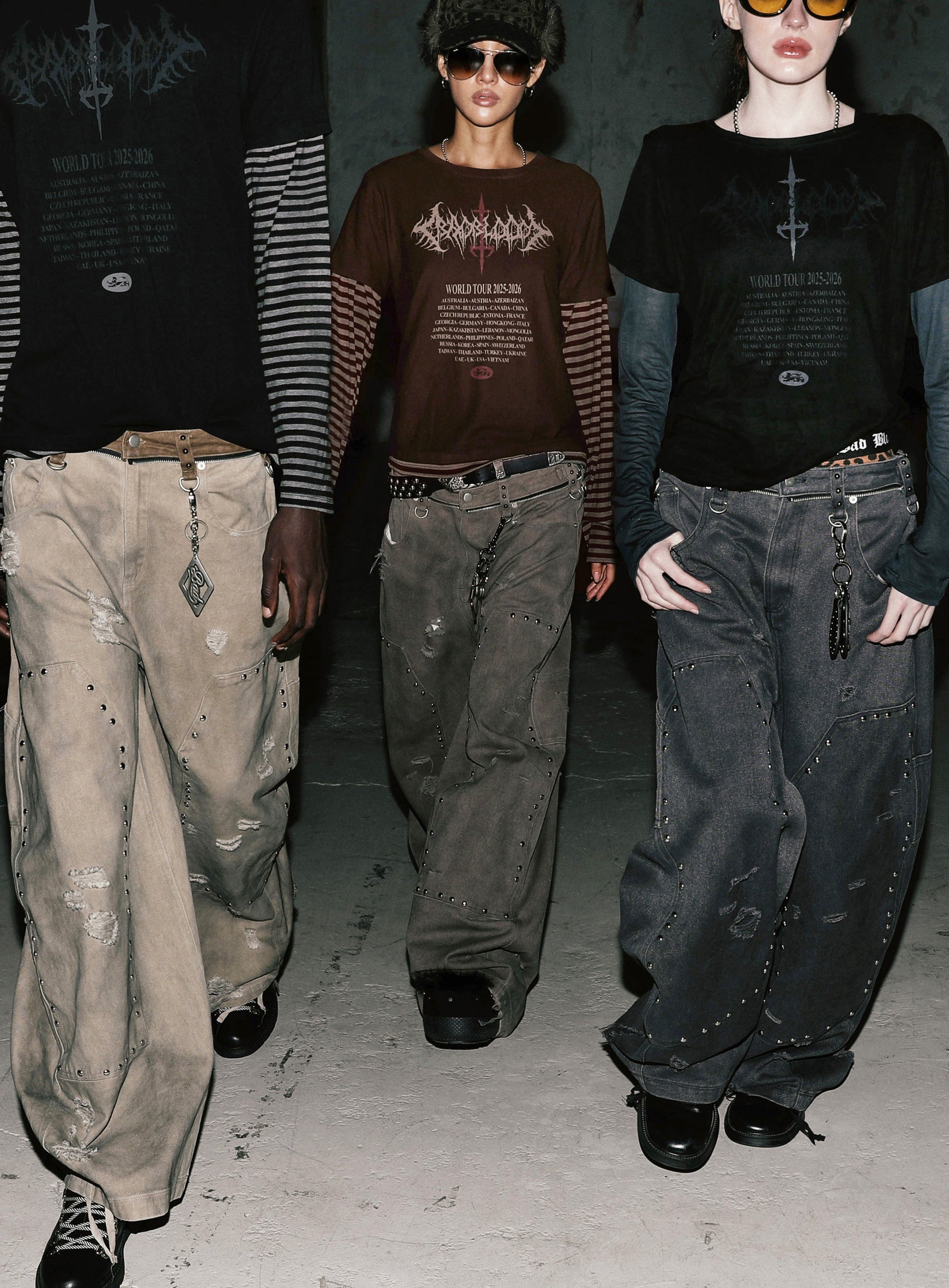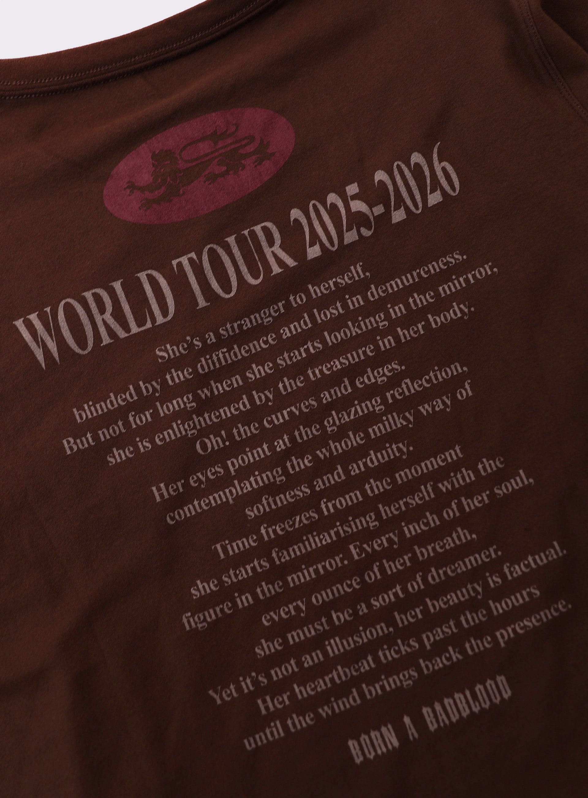 具有兩種面料拼接細節,營造層疊效果的2025世界巡演層疊長袖T恤。