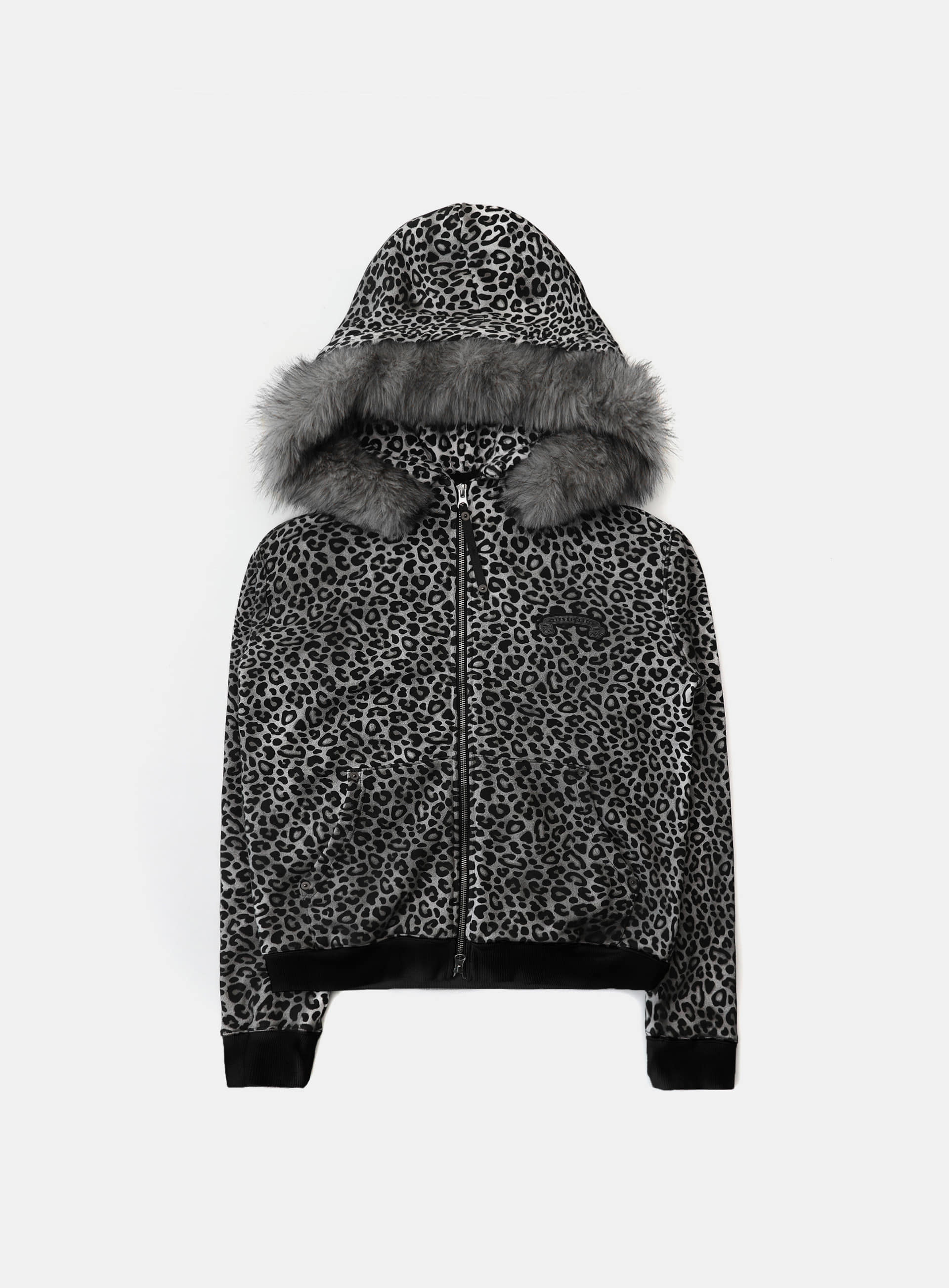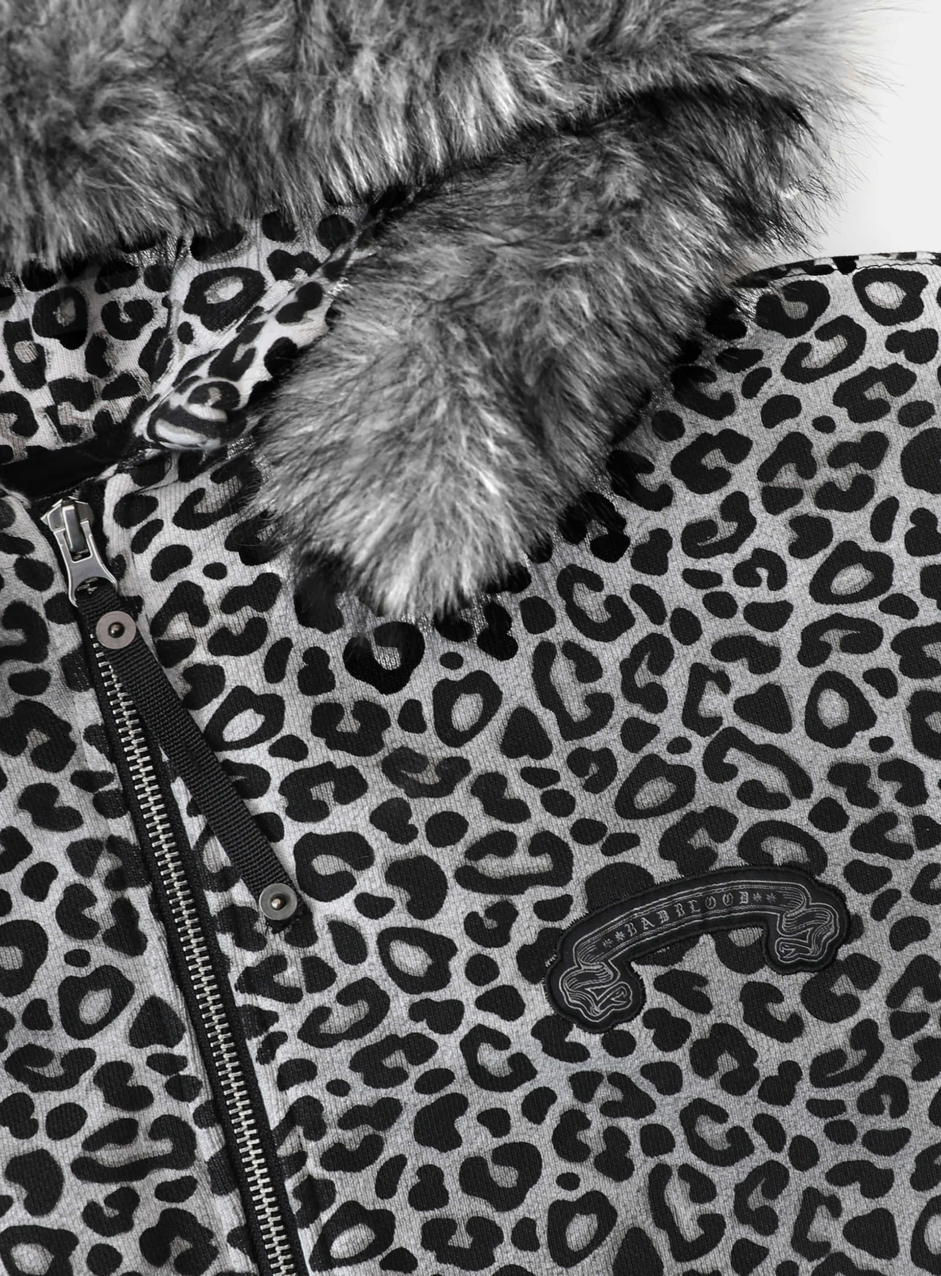 Cosmo 11 Detachable Fur Hood Zip-up - White Leopard