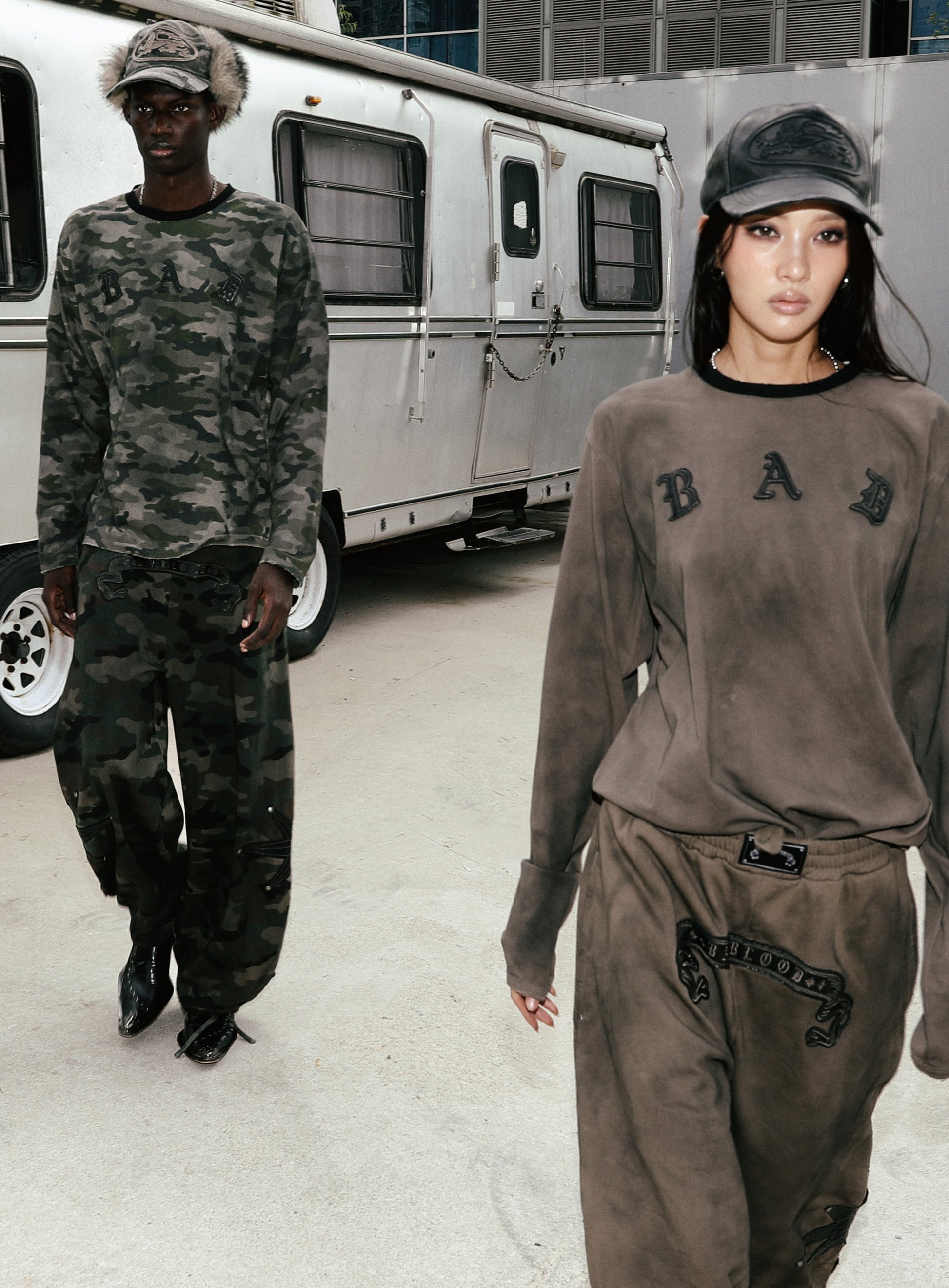 前幅搭配 經典 BAD 皮革補丁,後幅則有 大型 Badblood Cosmo 皮革補丁,下方點綴 Badblood Viper 皮革補丁,展現層次與品牌識別度。