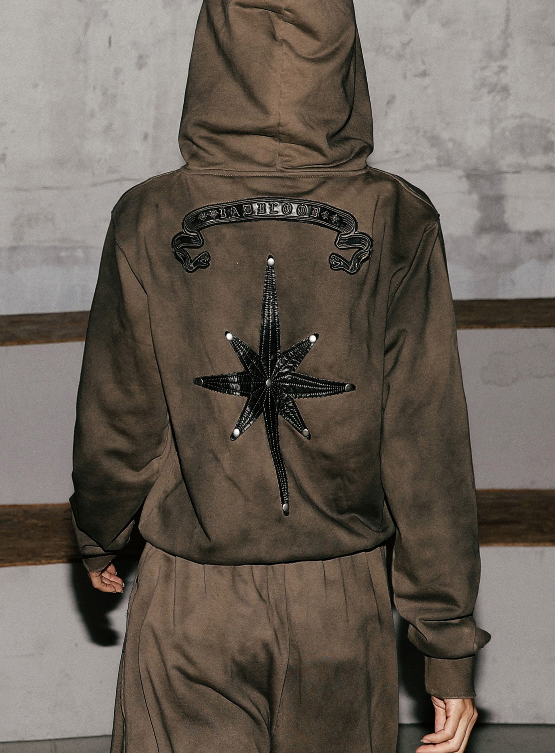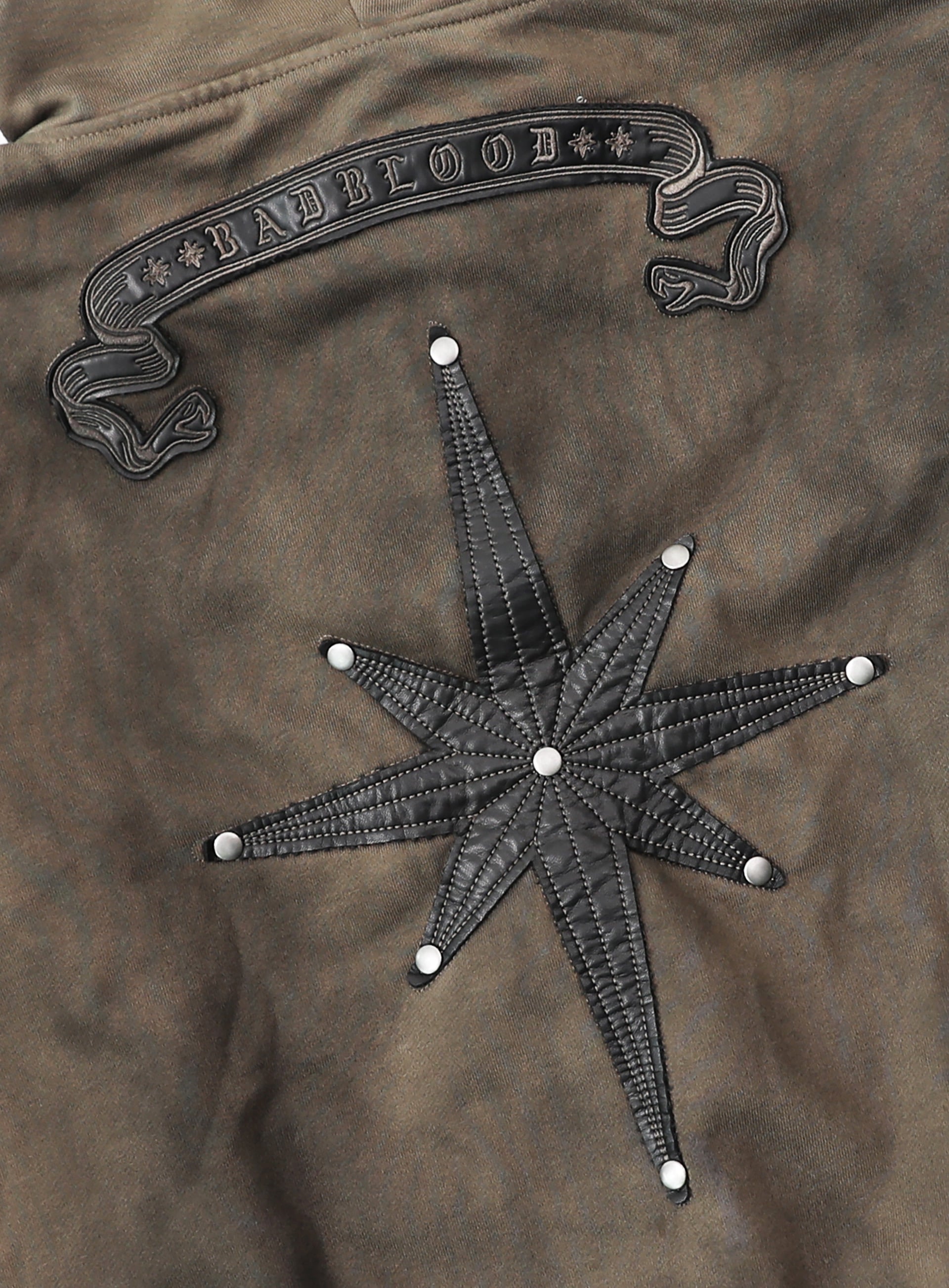 背面大尺寸 Badblood Cosmo 皮革貼片,下擺附 Badblood Viper 皮革貼片