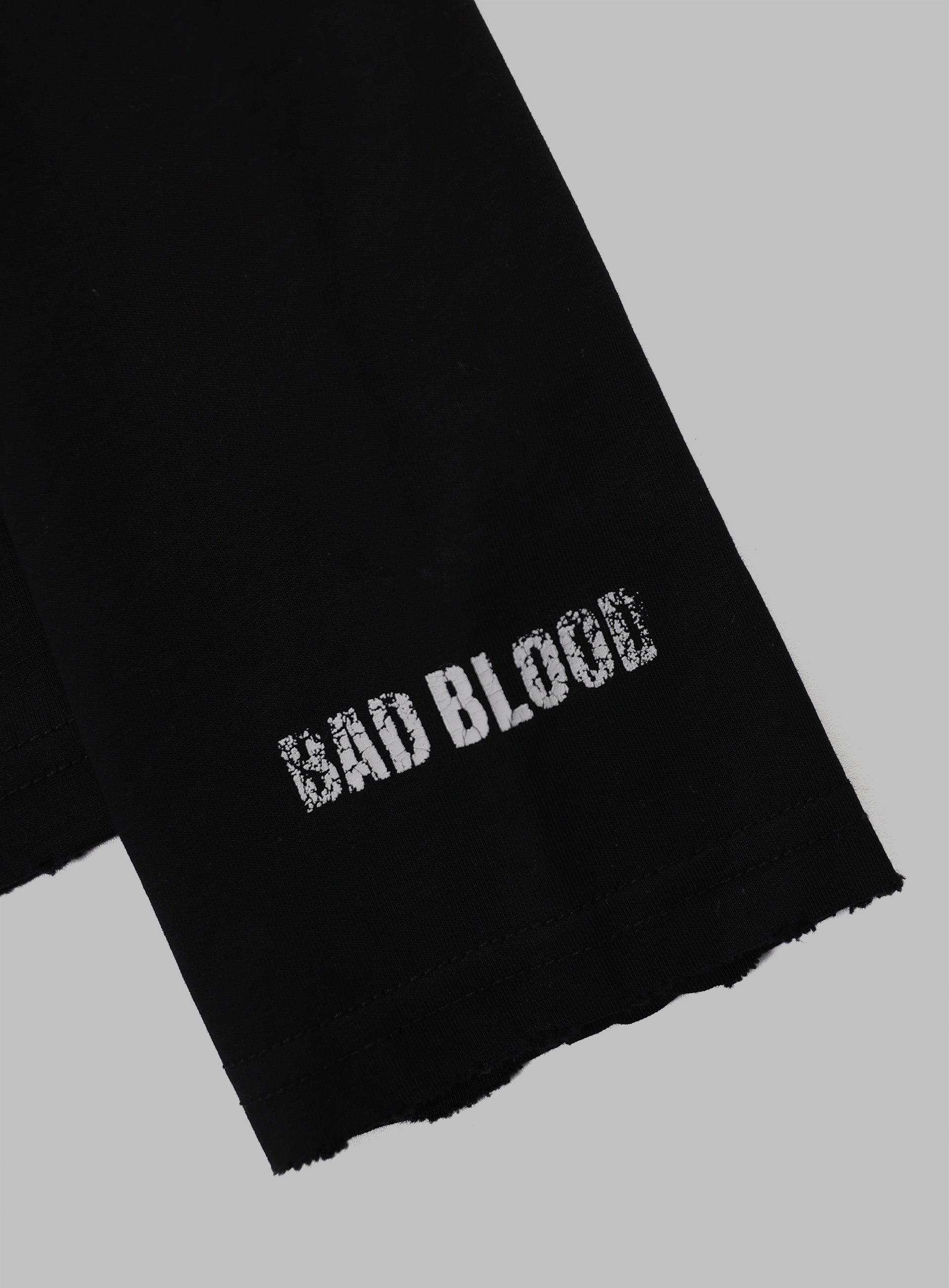 正面英文文字印花,袖子上印有 Badblood 標誌,