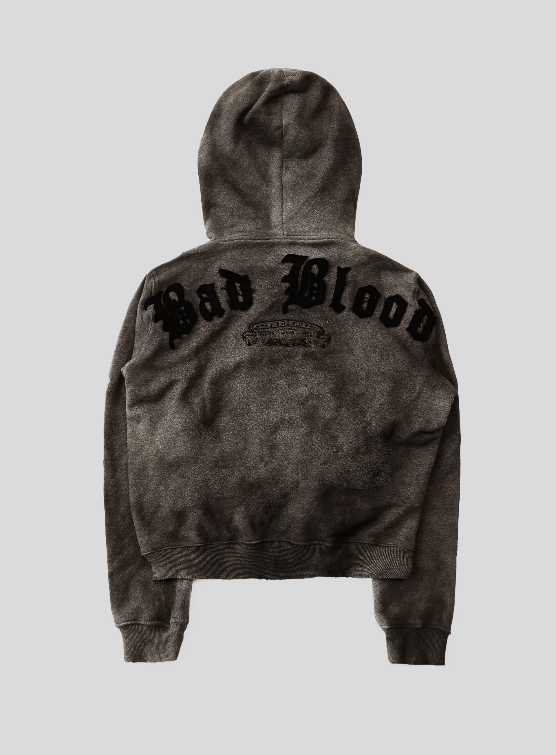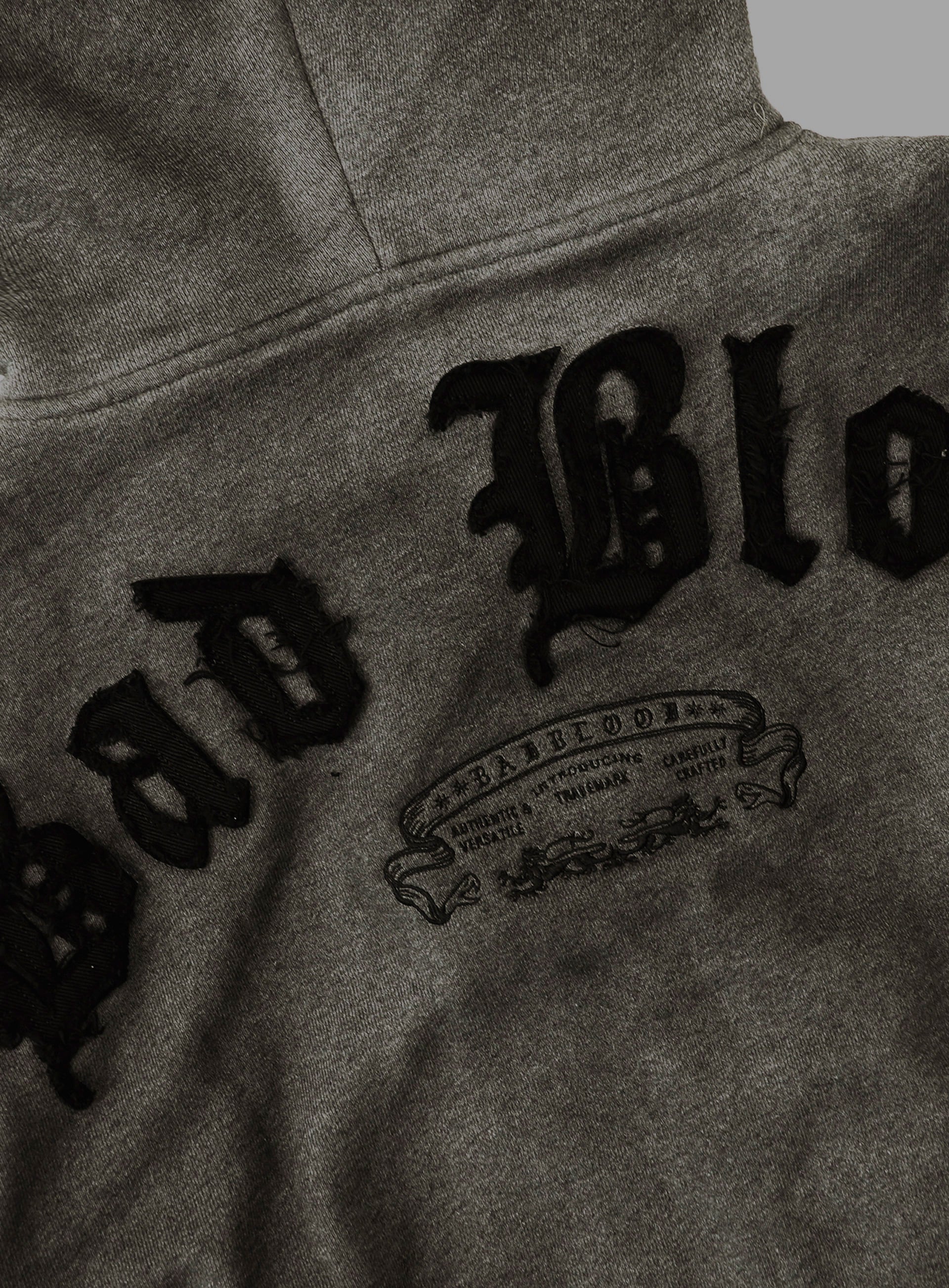背面為 BadBlood 書法體(Diploma 體)皮革貼飾 Logo。