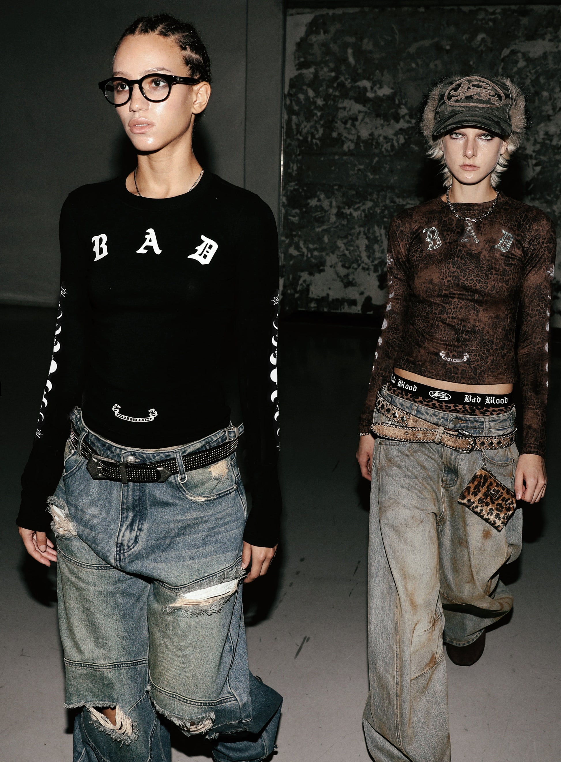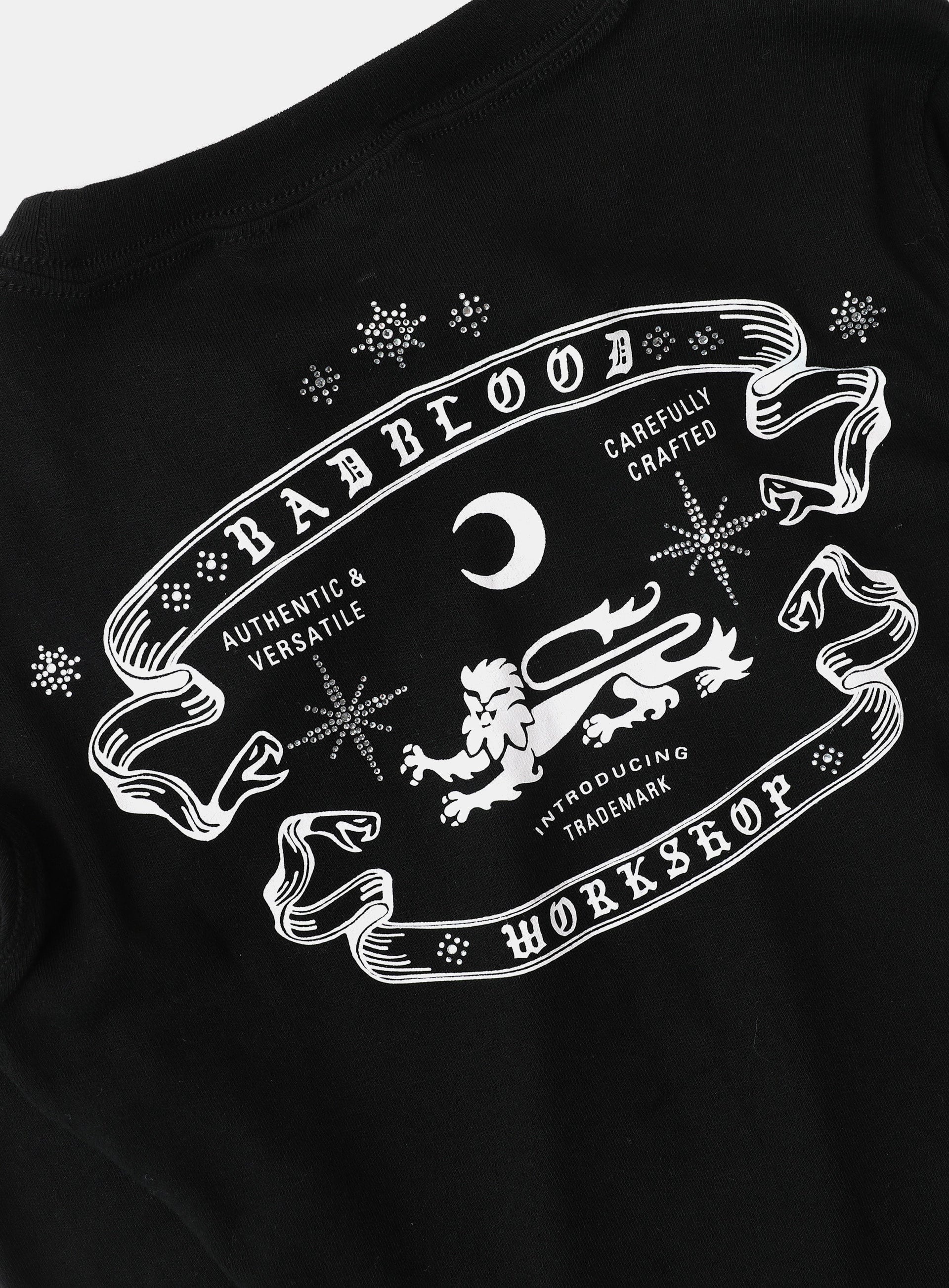 正面為 BAD 字樣印花與 Badblood 橫幅標誌,背面則有大型 Badblood 水鑽獅子徽章圖騰,極具辨識度。