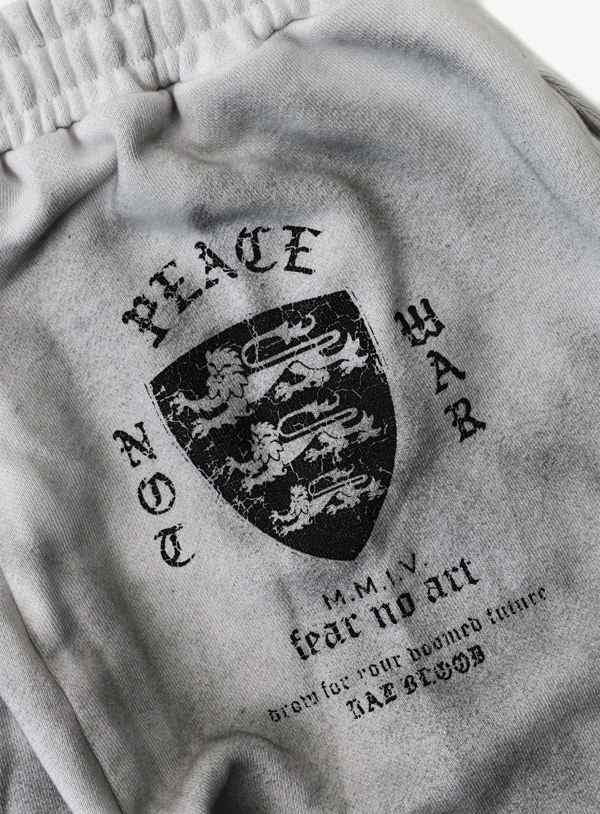 以反戰訊息為核心,融合 BADBLOOD 獨有的圖像設計,展現品牌的哲學與個性,打造出具有獨特風格的 PEACE NOT WAR 慢跑長褲。