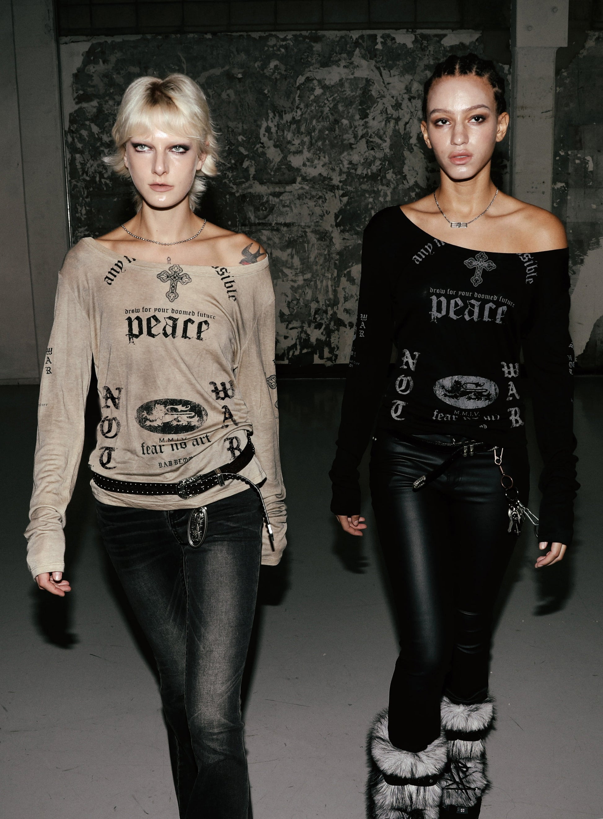 以反戰訊息為核心,融合 BADBLOOD 獨有的圖像設計,展現品牌哲學與個性,打造出具獨特風格的 PEACE NOT WAR 寬鬆版型短袖上衣。