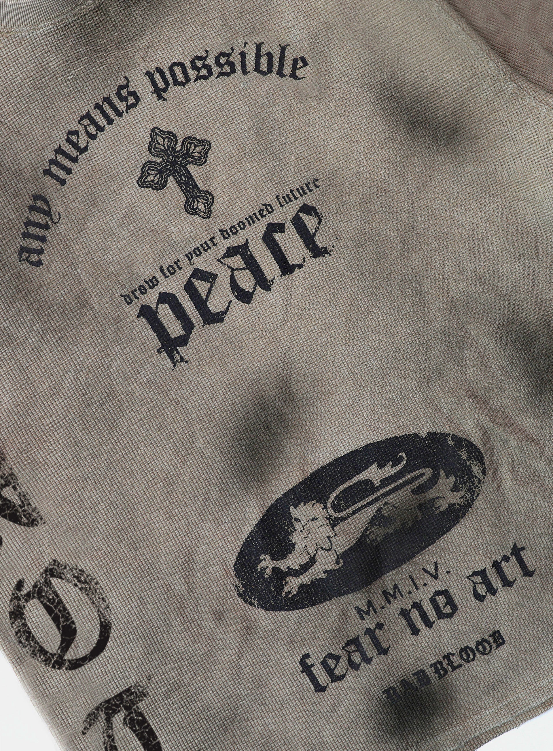 以反戰訊息為主題,融合 BADBLOOD 獨有的圖像設計,展現品牌的哲學與個性,打造出具有獨特風格的 PEACE NOT WAR 短袖上衣。