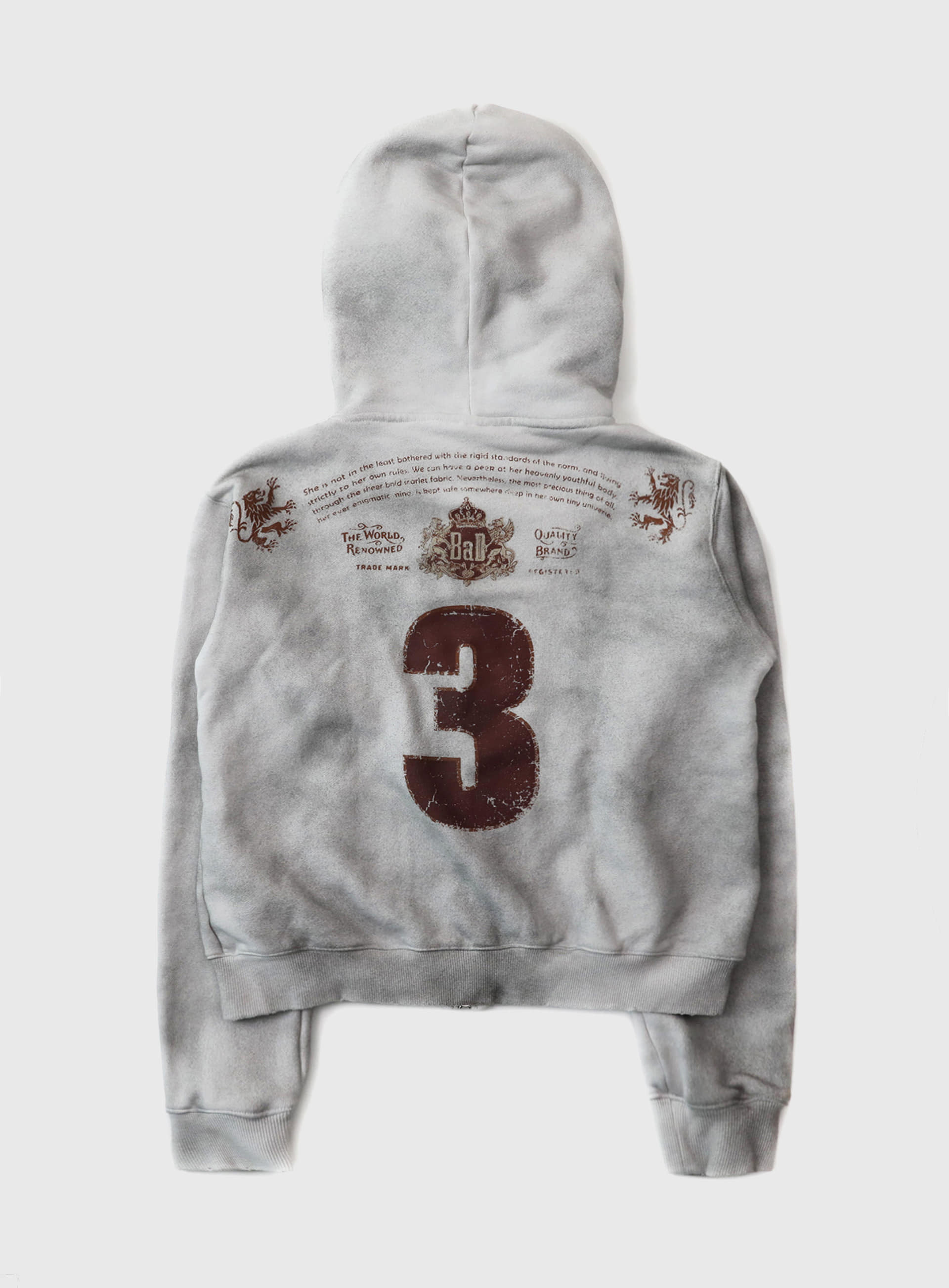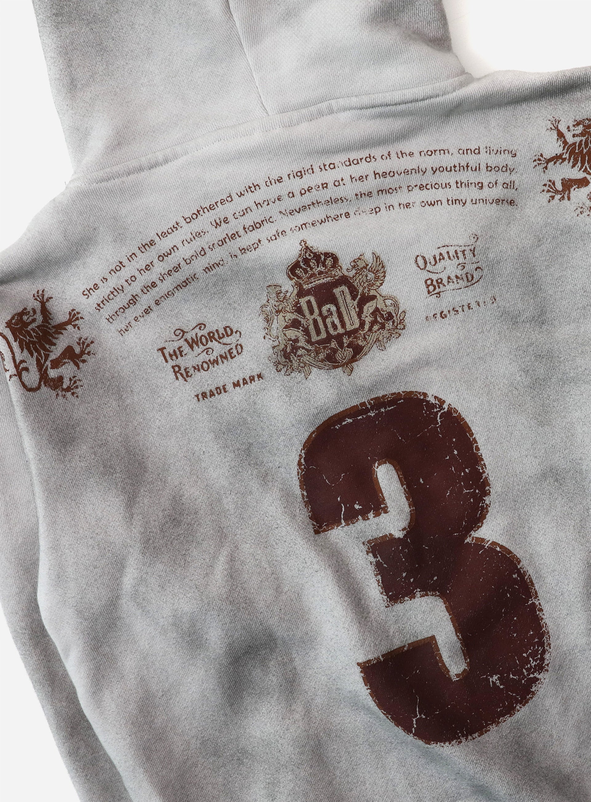 使用Dirty Aging工藝處理,搭配破裂印刷標誌,展現出復古洗水效果的Royal Classic Distressed Hoodie Zip-Up。