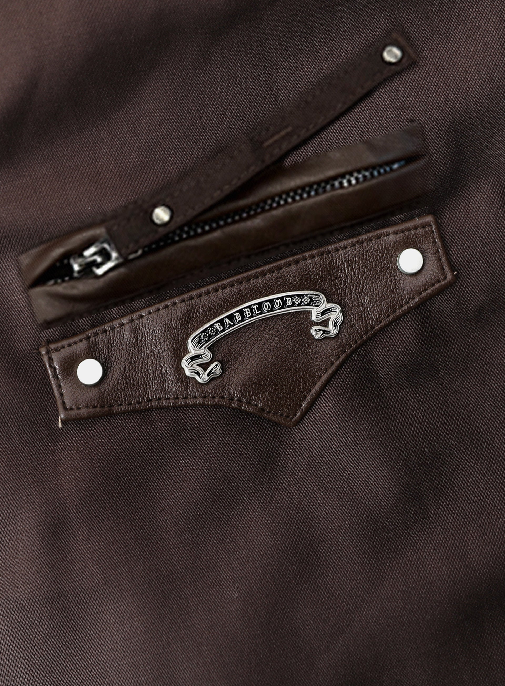 正面設有嵌線口袋與胸前拉鍊口袋,並點綴 Badblood Viper 金屬標誌皮革布章,彰顯品牌魅力。