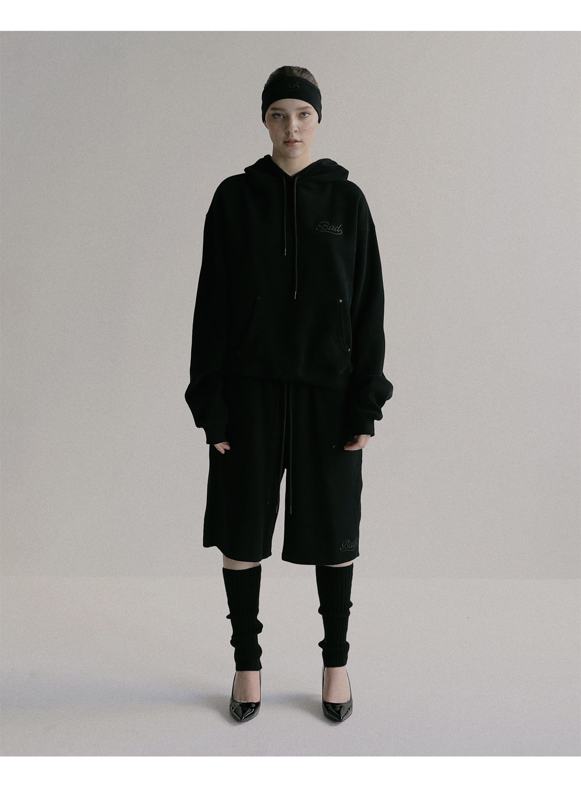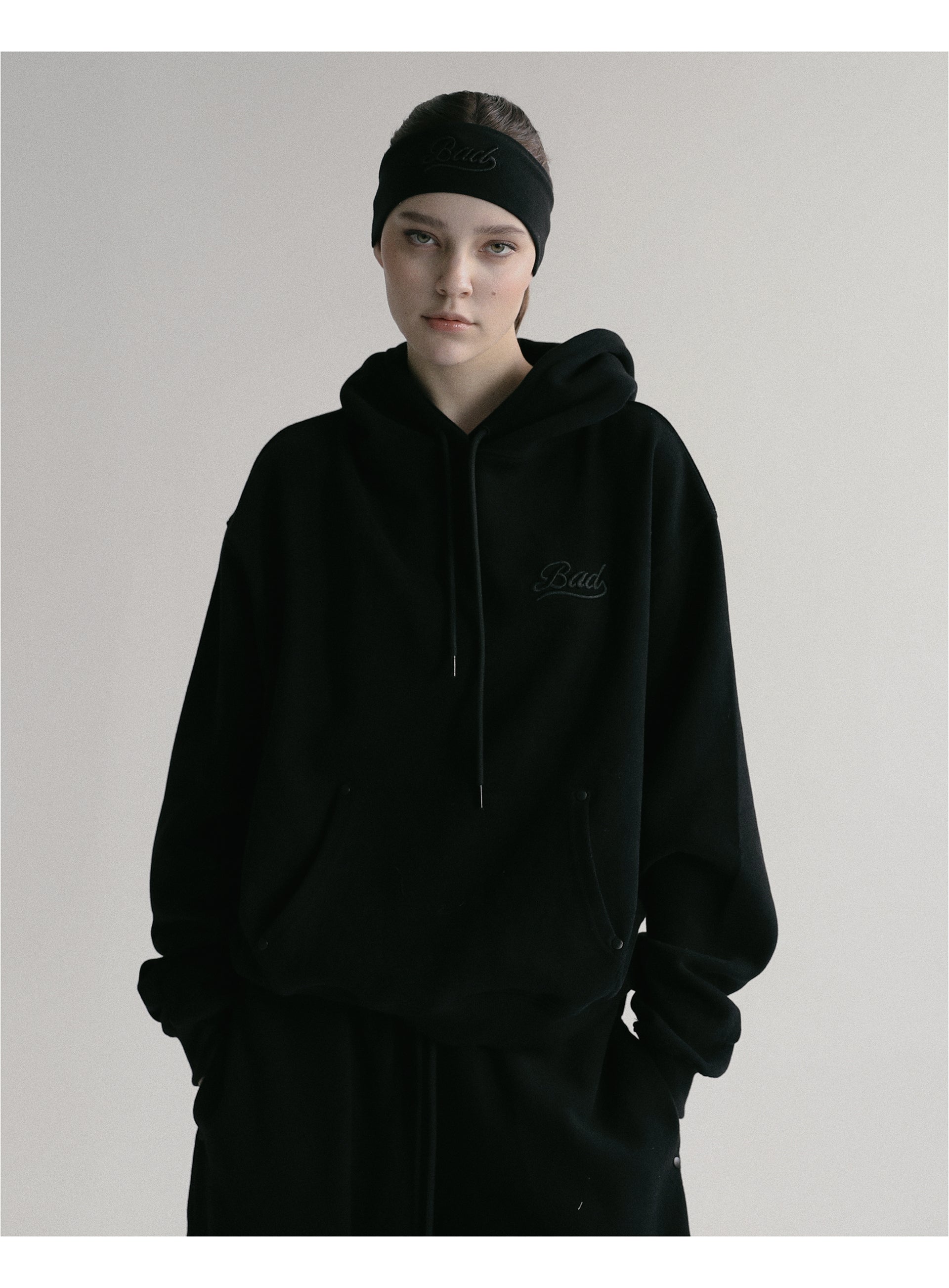 採用 柔軟有機棉面料,以 法式毛圈(French Terry) 材質自行織造製作的 Bad 標誌 Soft Hoodie。