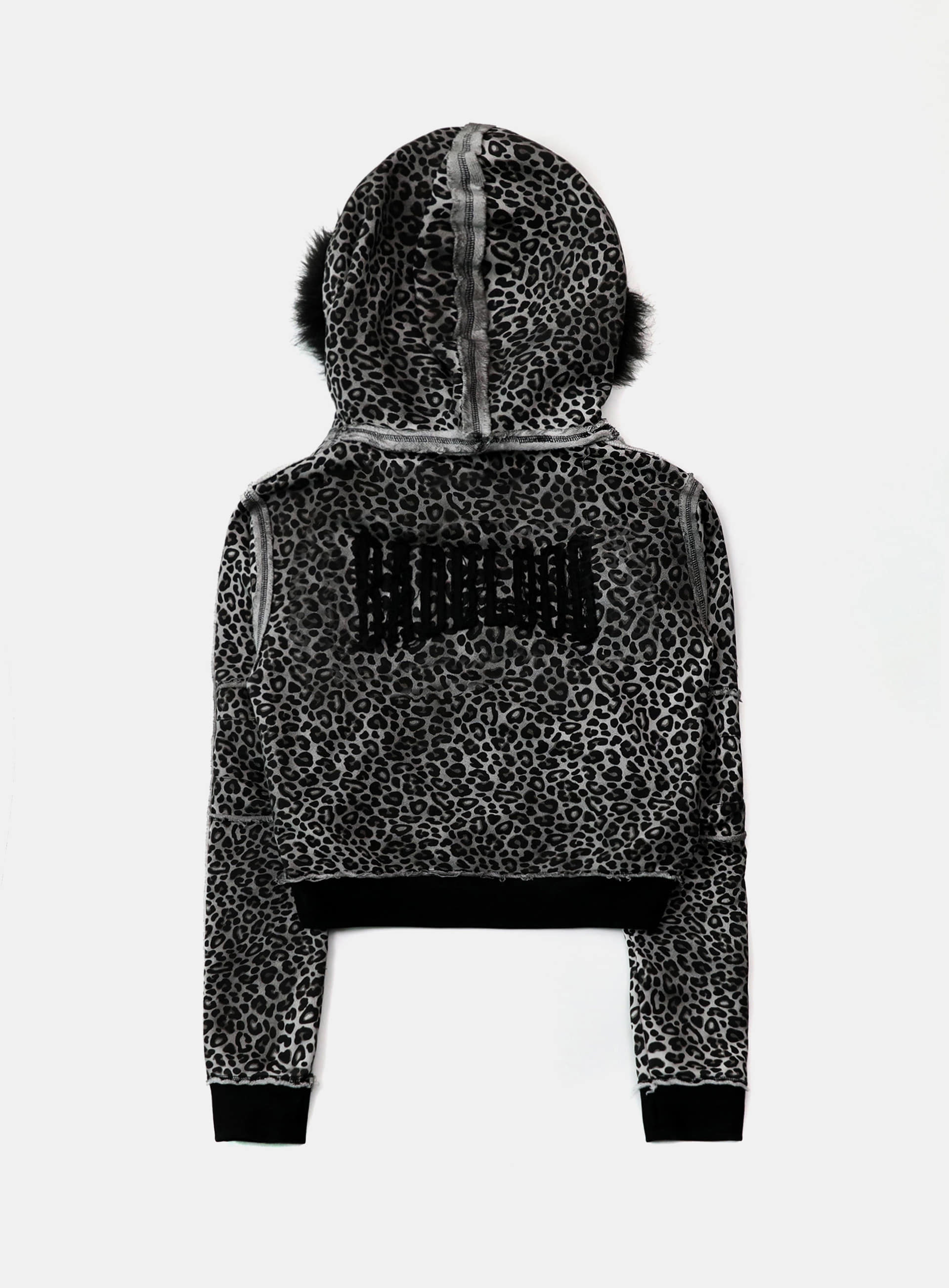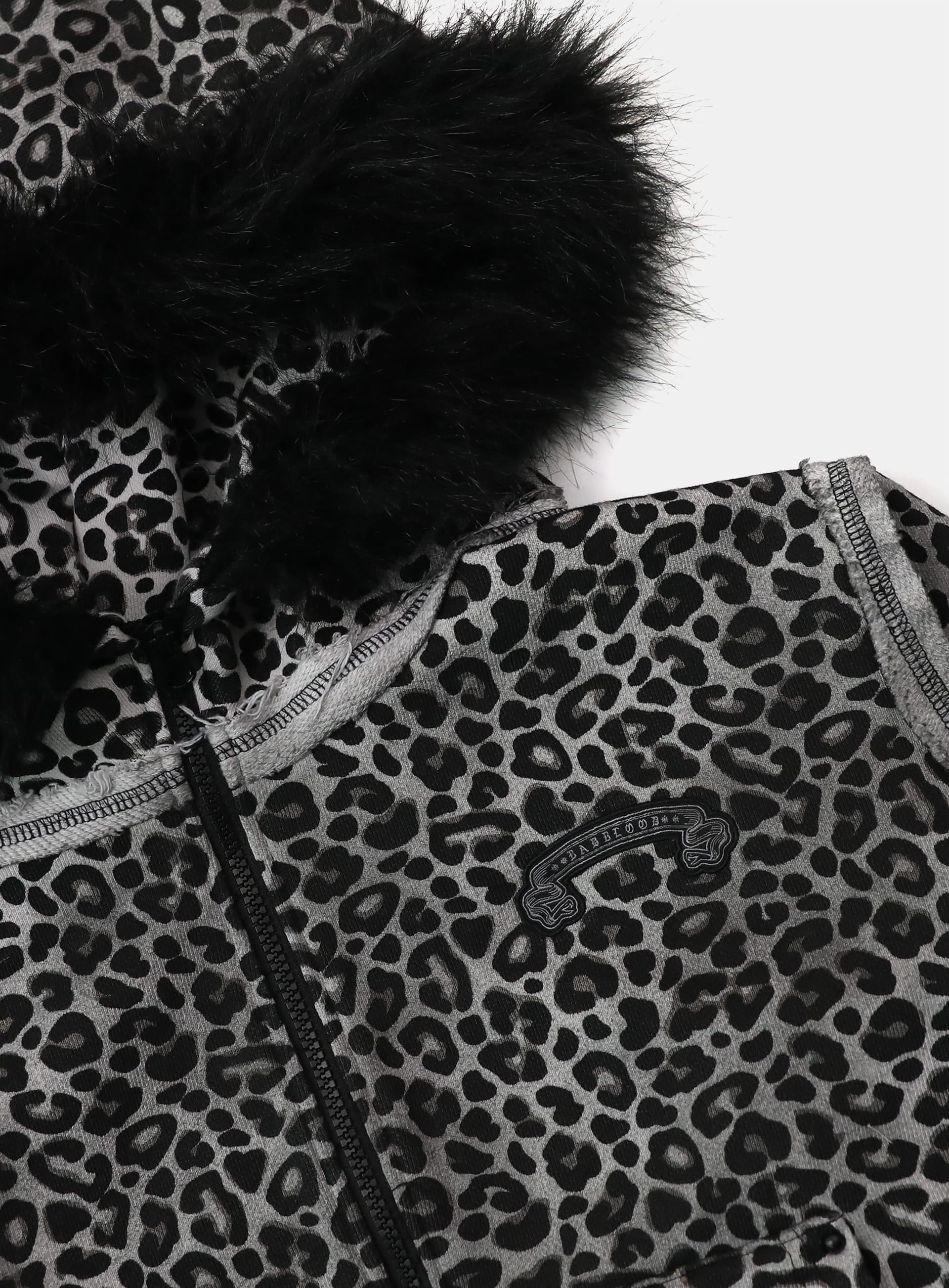 [w-hde25-081] Low Edge Detachable Fur Hooded Zip-Up Slim Fit - White Leopard