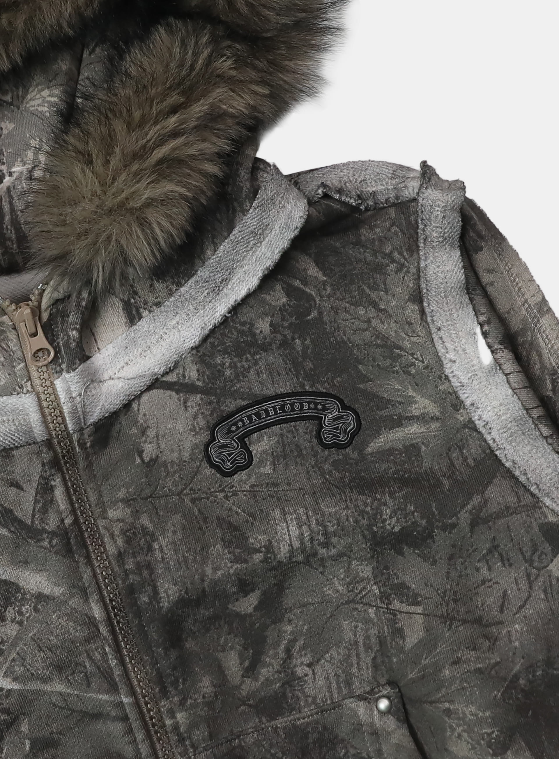 [w-hde25-082] Low Edge Detachable Fur Hooded Zip-Up Slim Fit - Light Real Tree