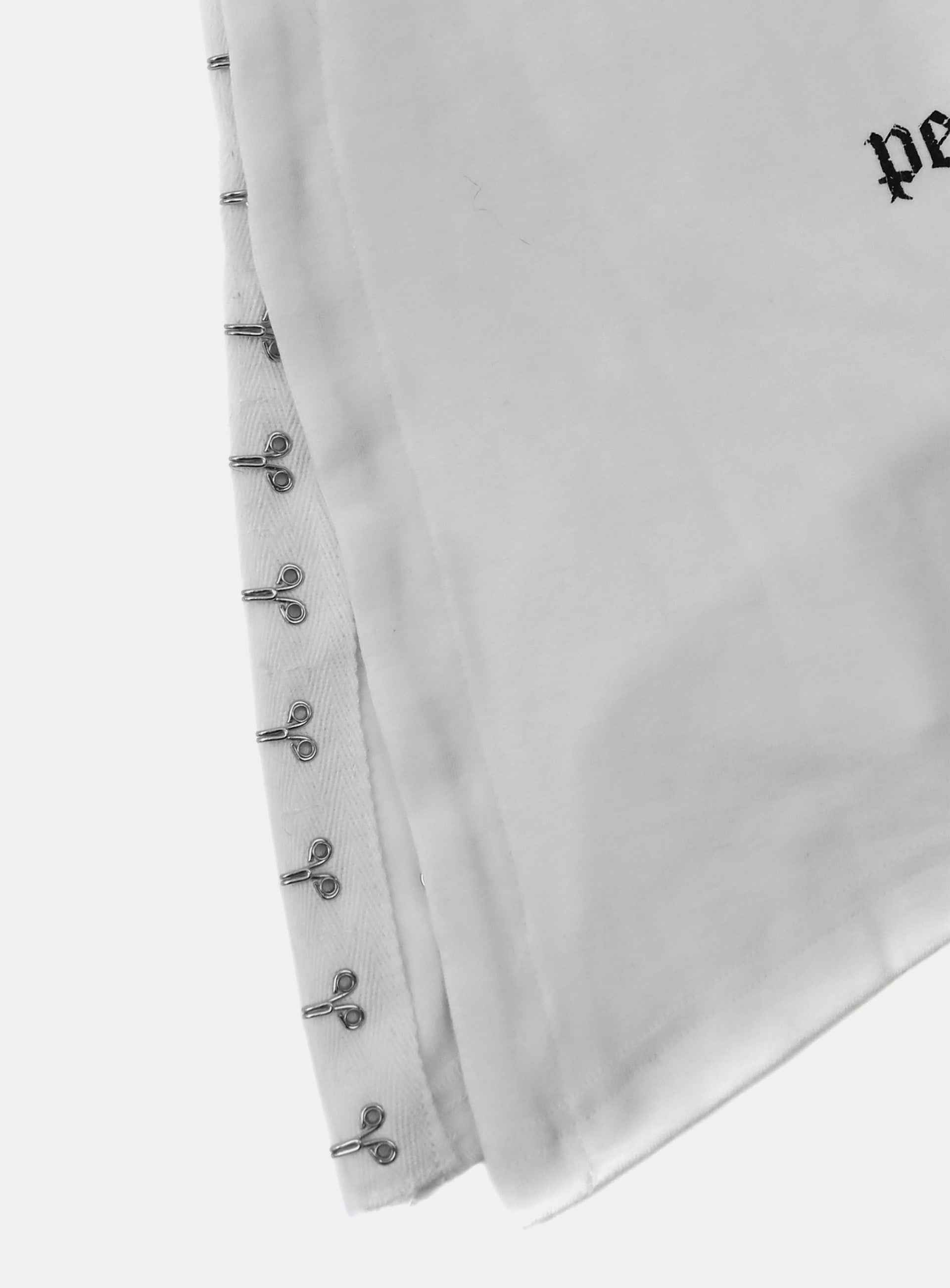 [w-hde25-086] PEACE NOT WAR Slim Cutout Hoodie - White