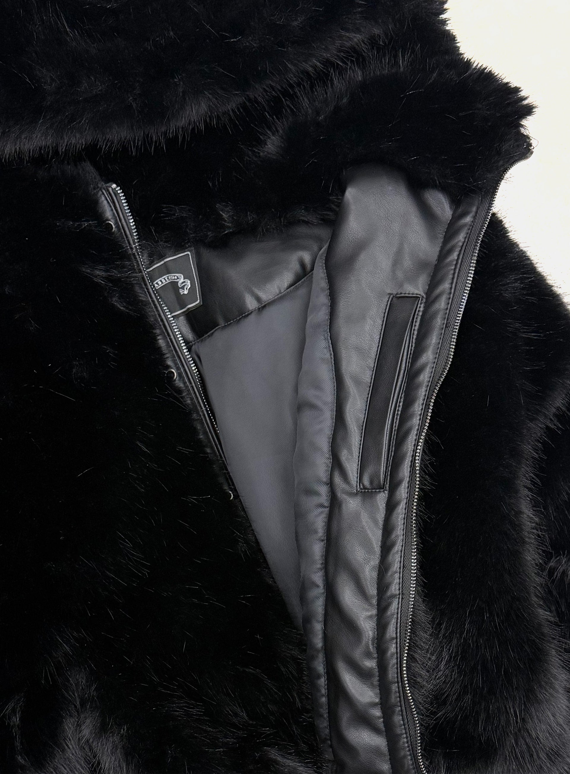 [w-jkt25-051] Viper81 Hooded Fur Jacket - Black