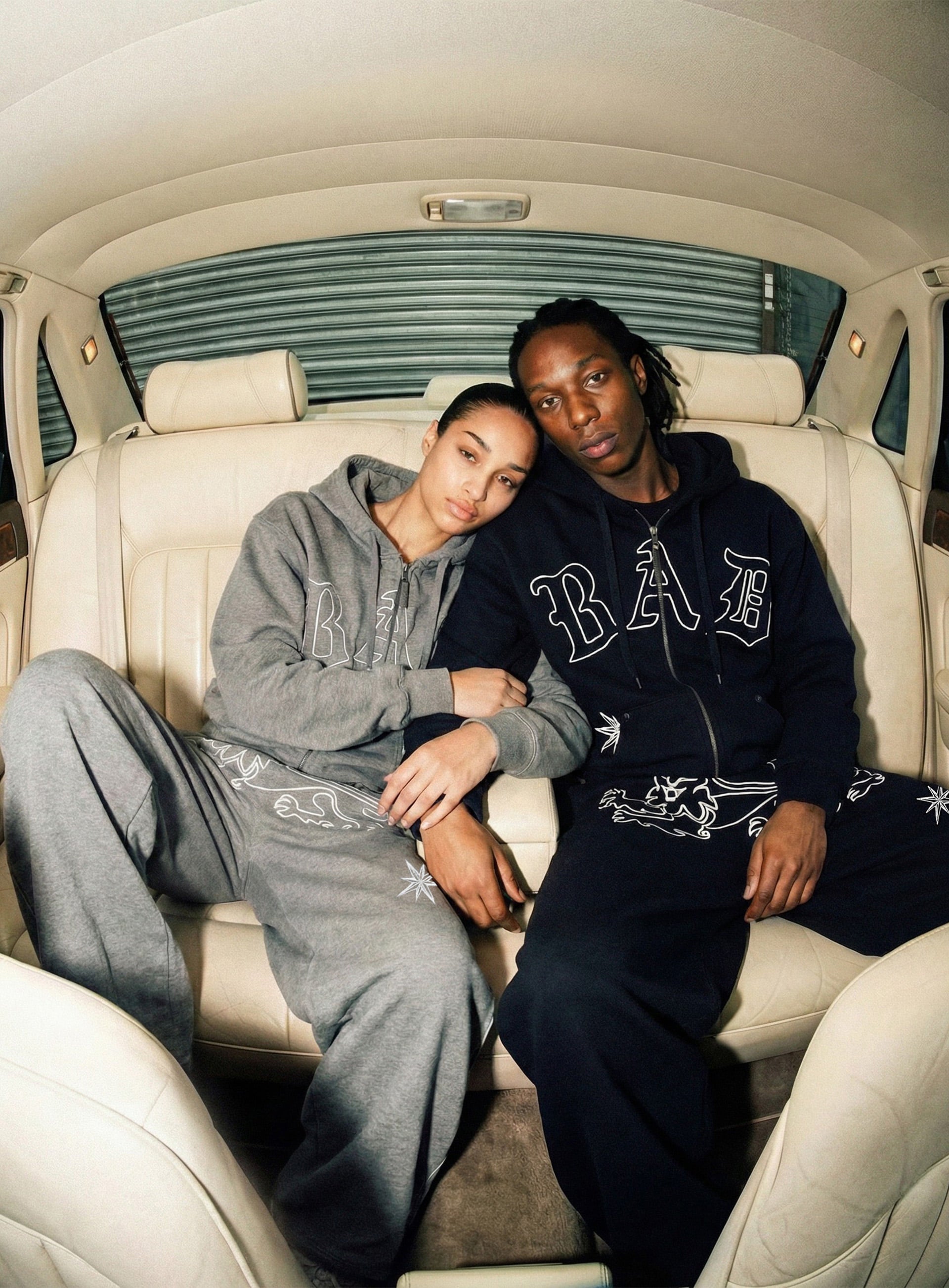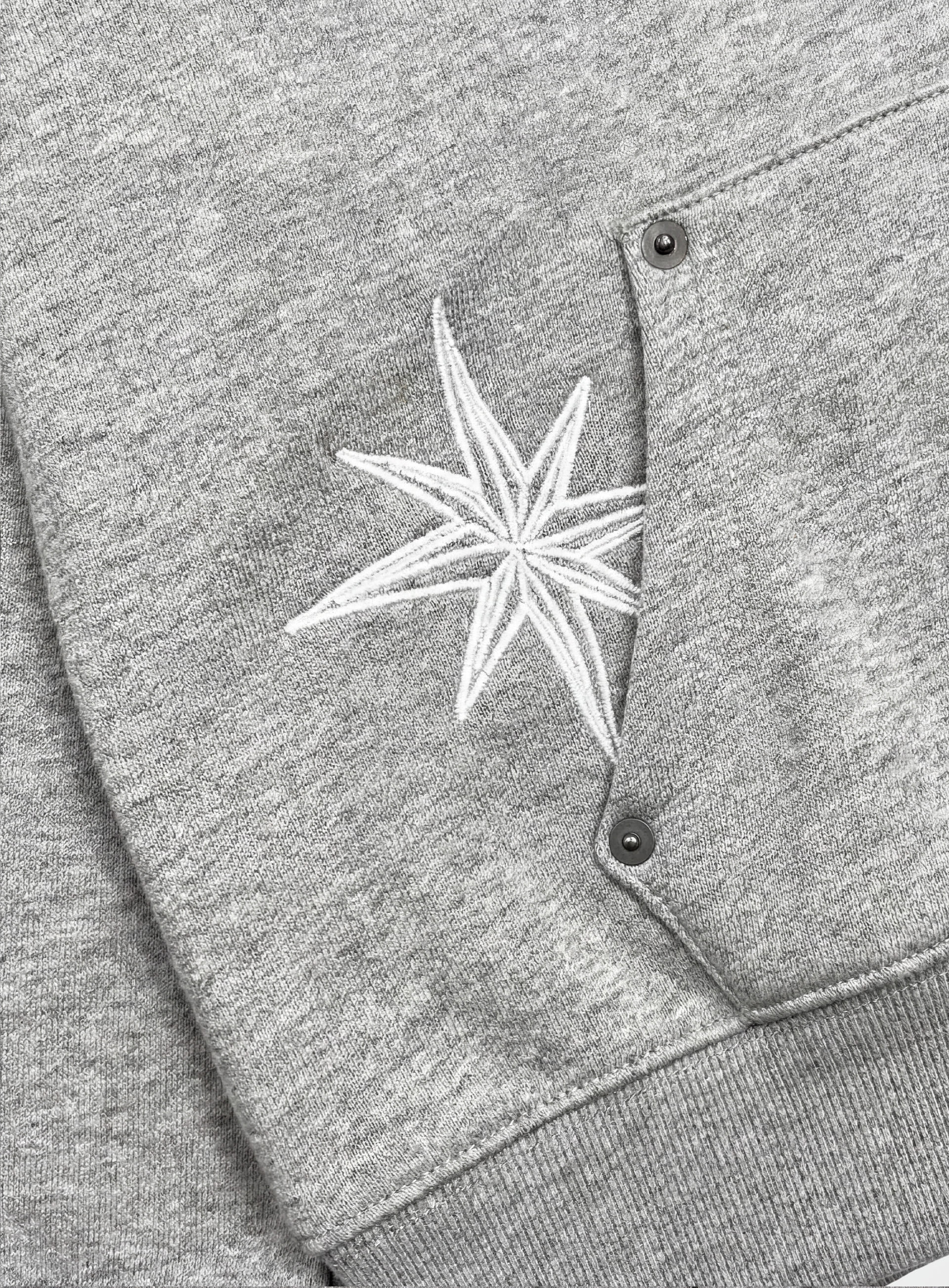 以重磅 French Terry 面料製成,雙側袋鼠口袋皆以鉚釘收邊,提升細節質感。