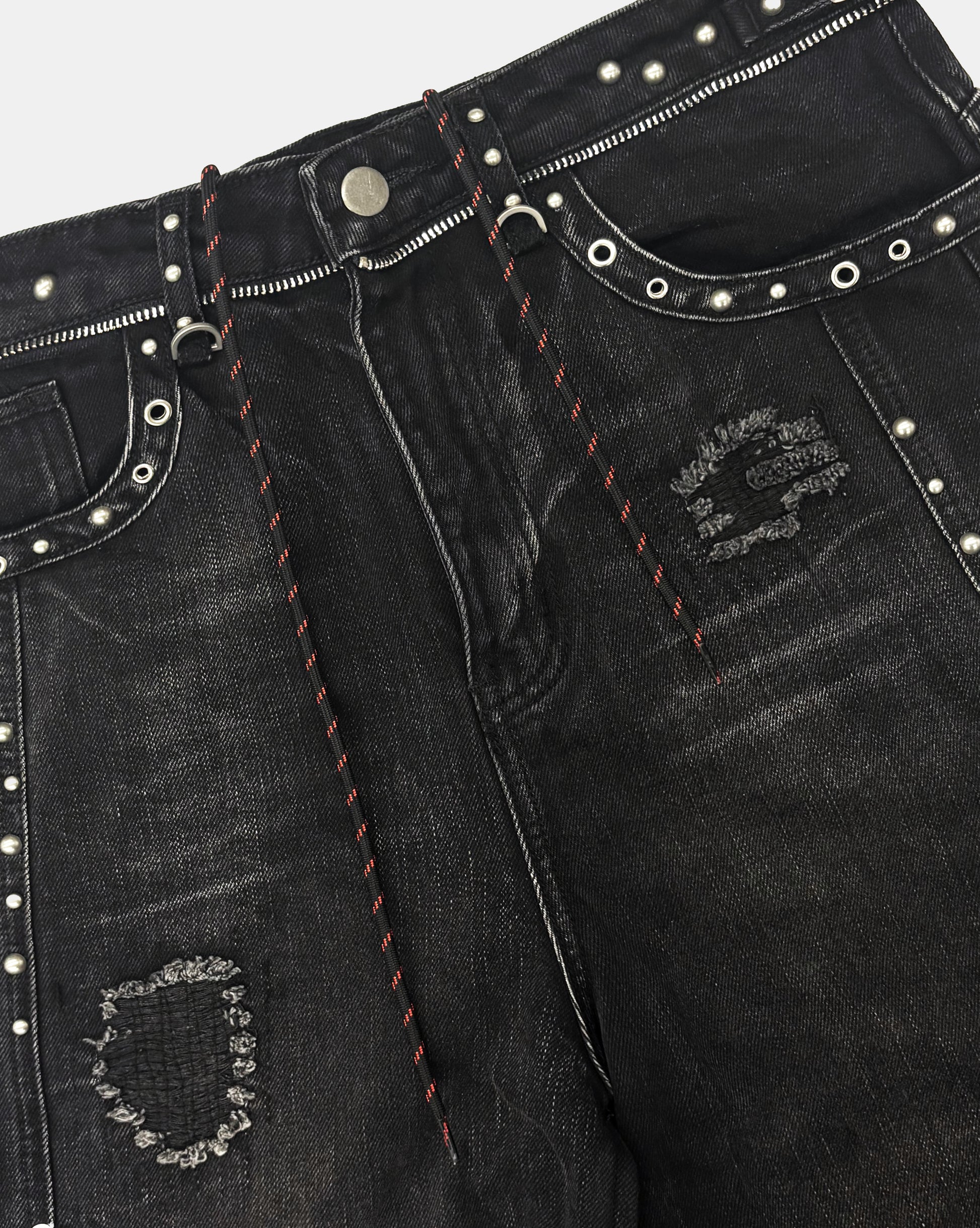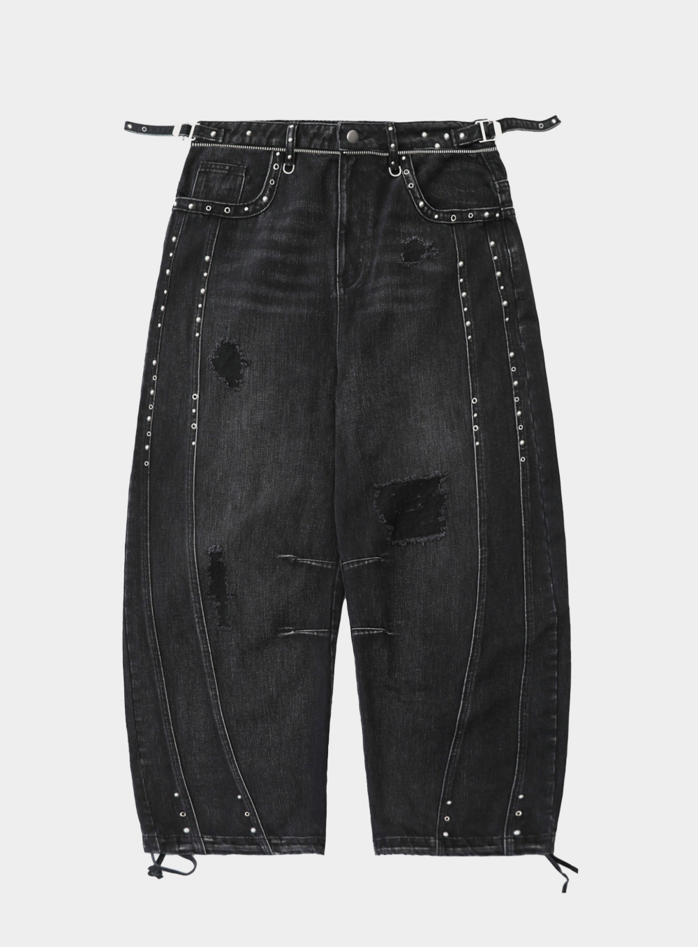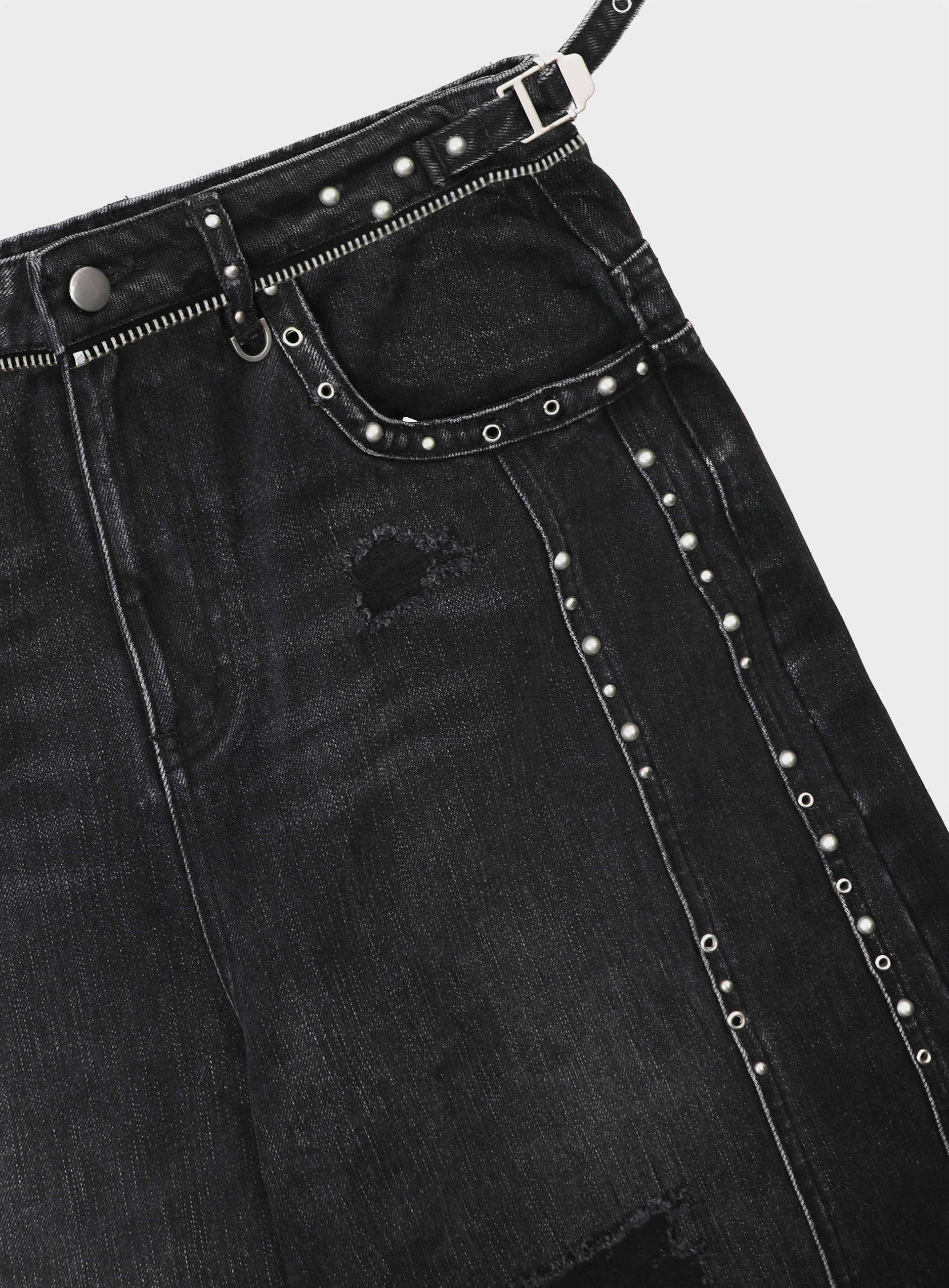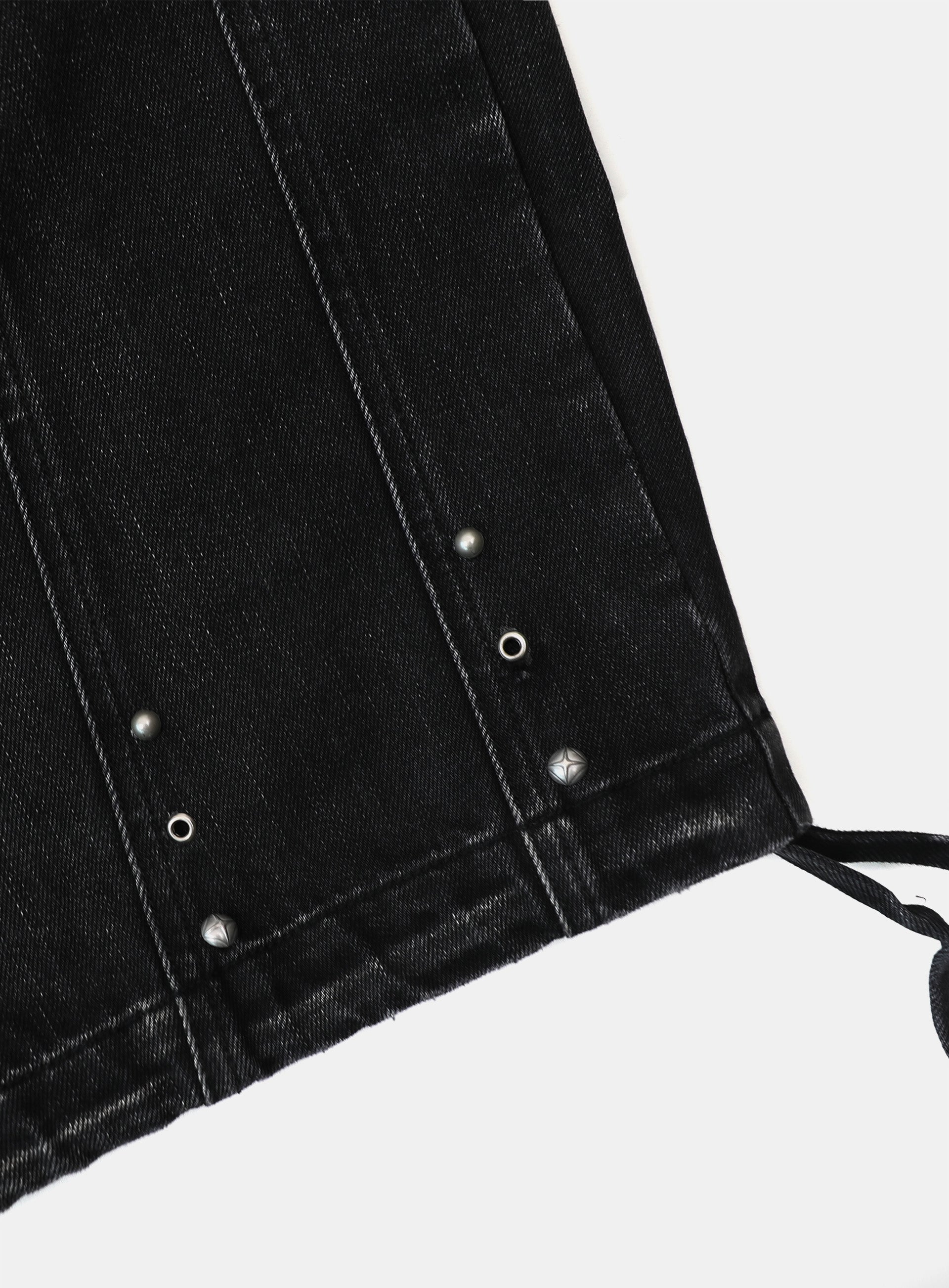 [w-pts25-080] Line Studded Curved Denim Pants - Black