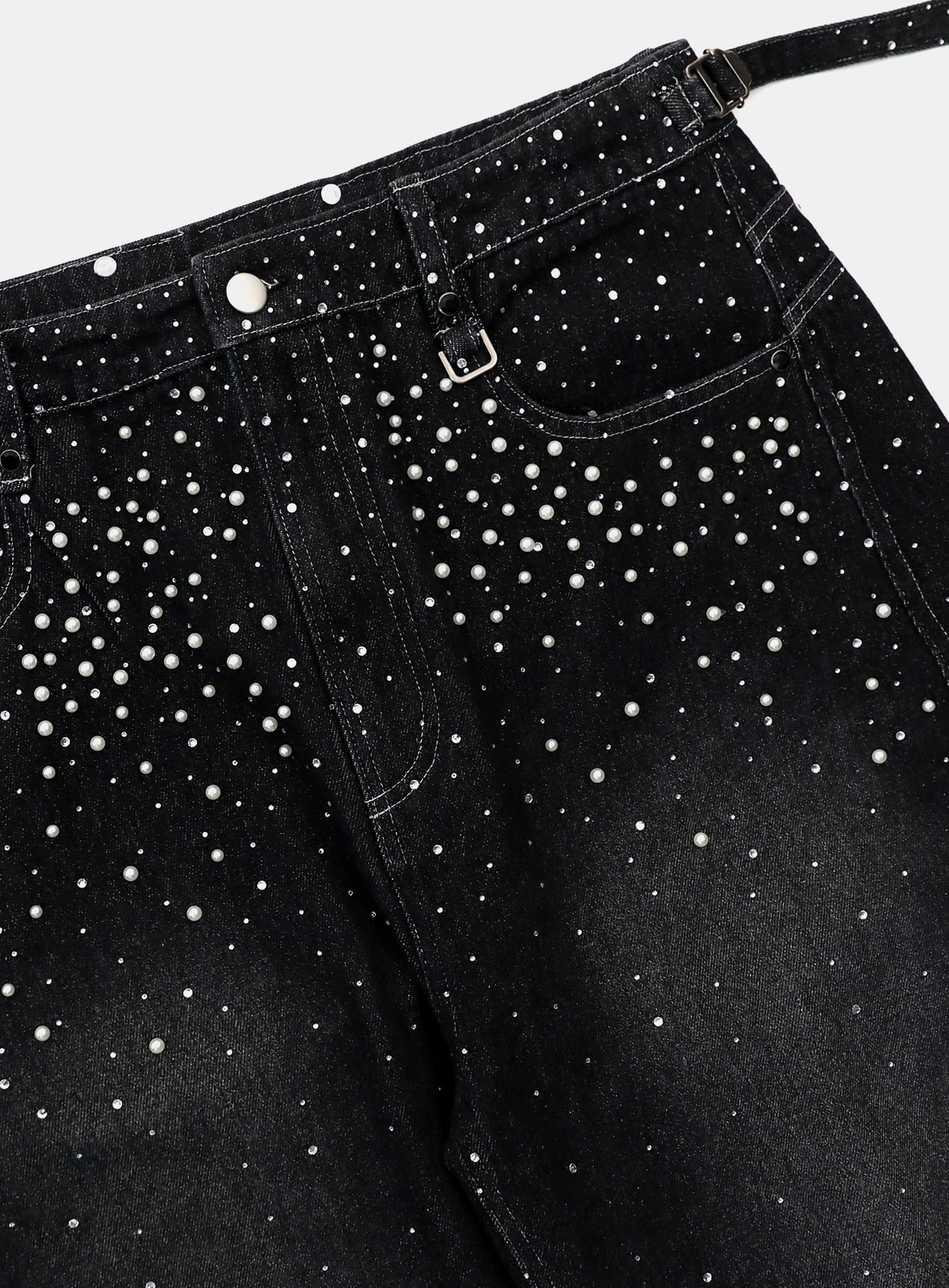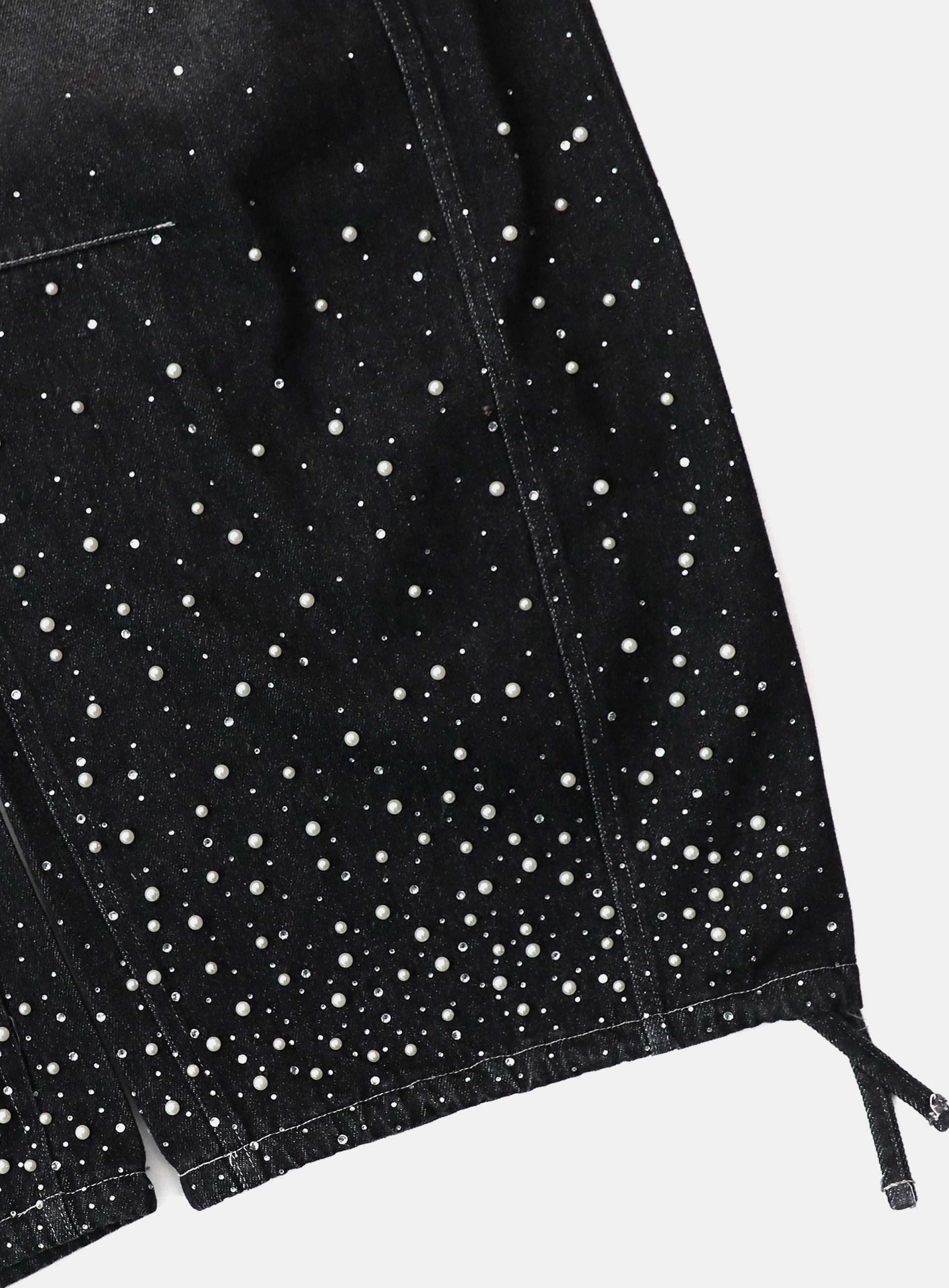 [w-pts25-092] BBNT Rhinestone Curved Pants – Black