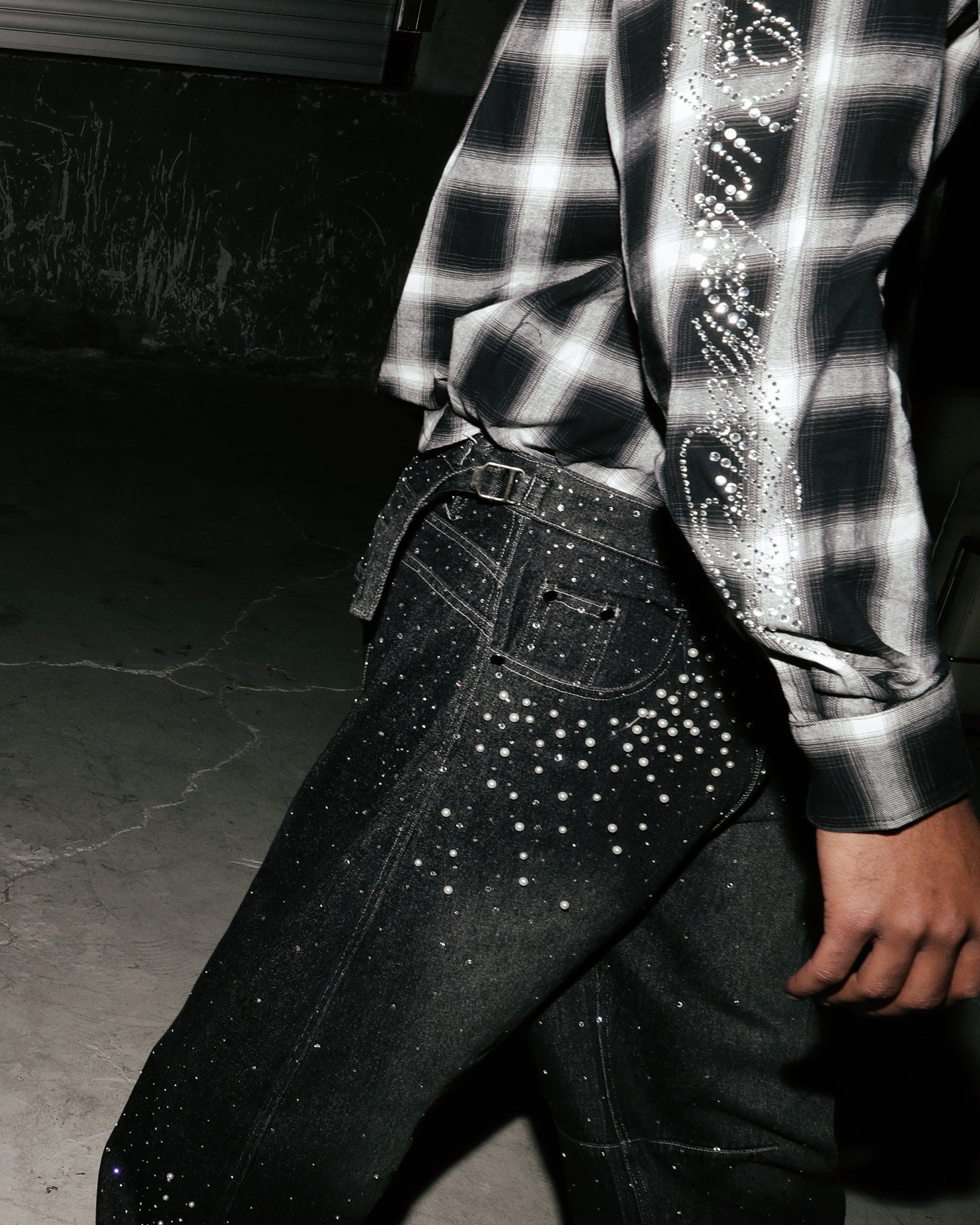 呈現出 BBNT Rhinestone Curved Pants 的獨特魅力。
