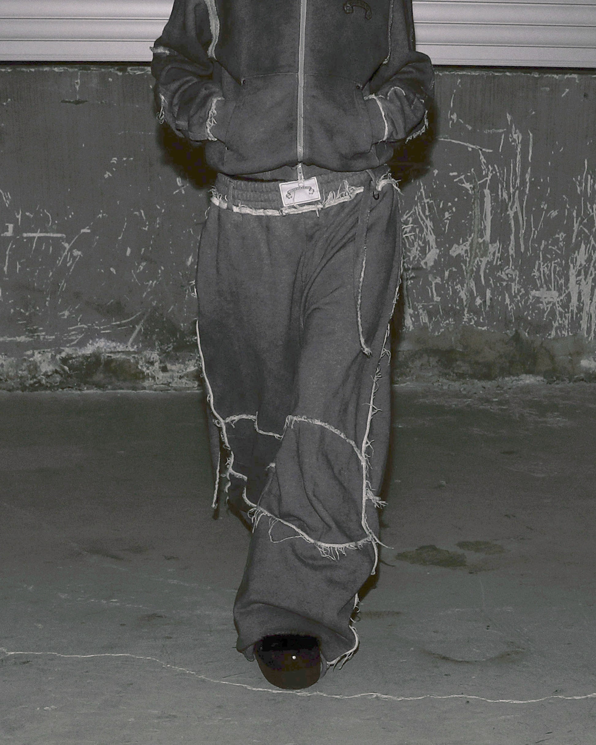 採用重磅法式毛圈布(French Terry)製成的毛邊 Convex 慢跑褲。