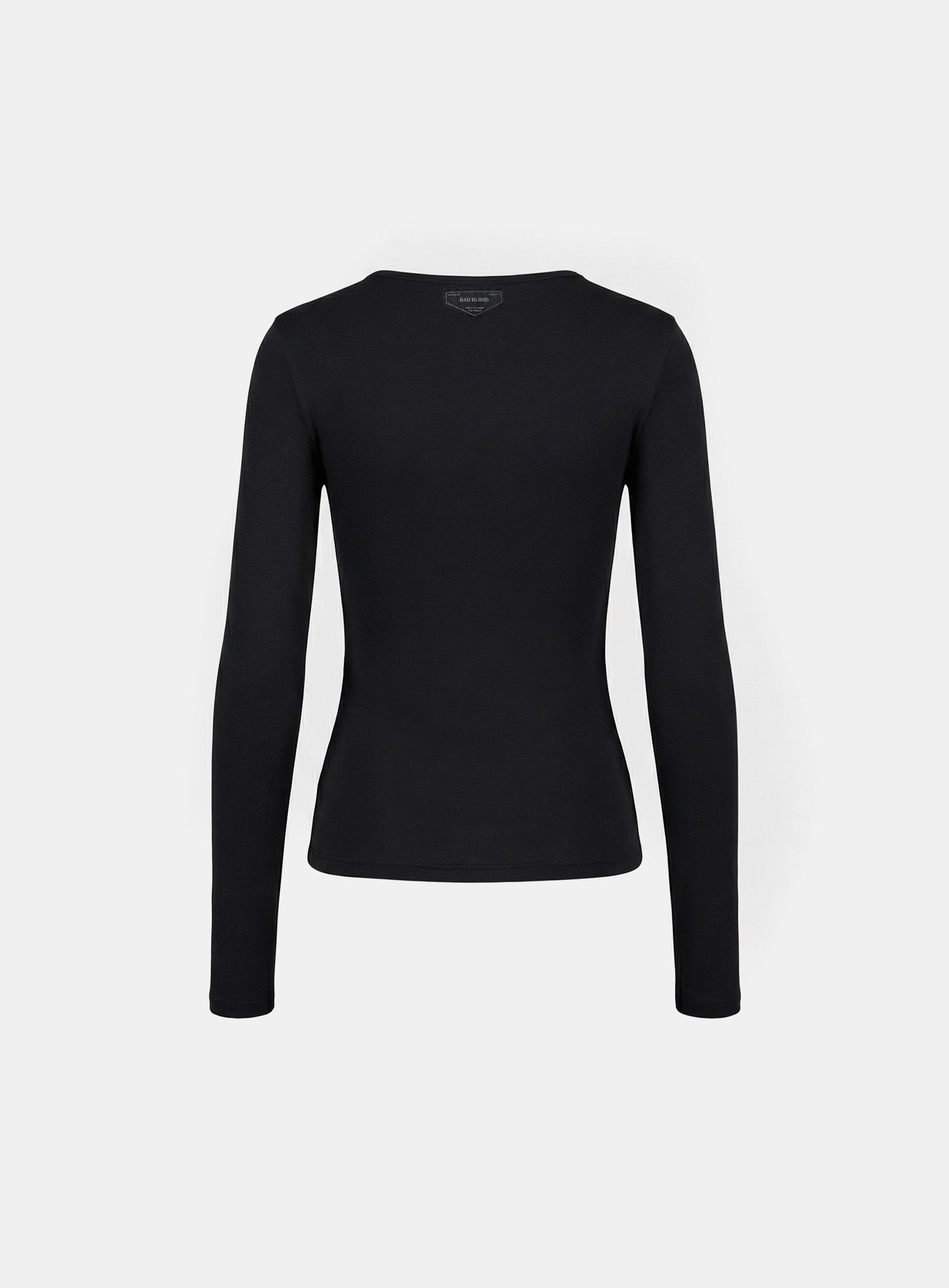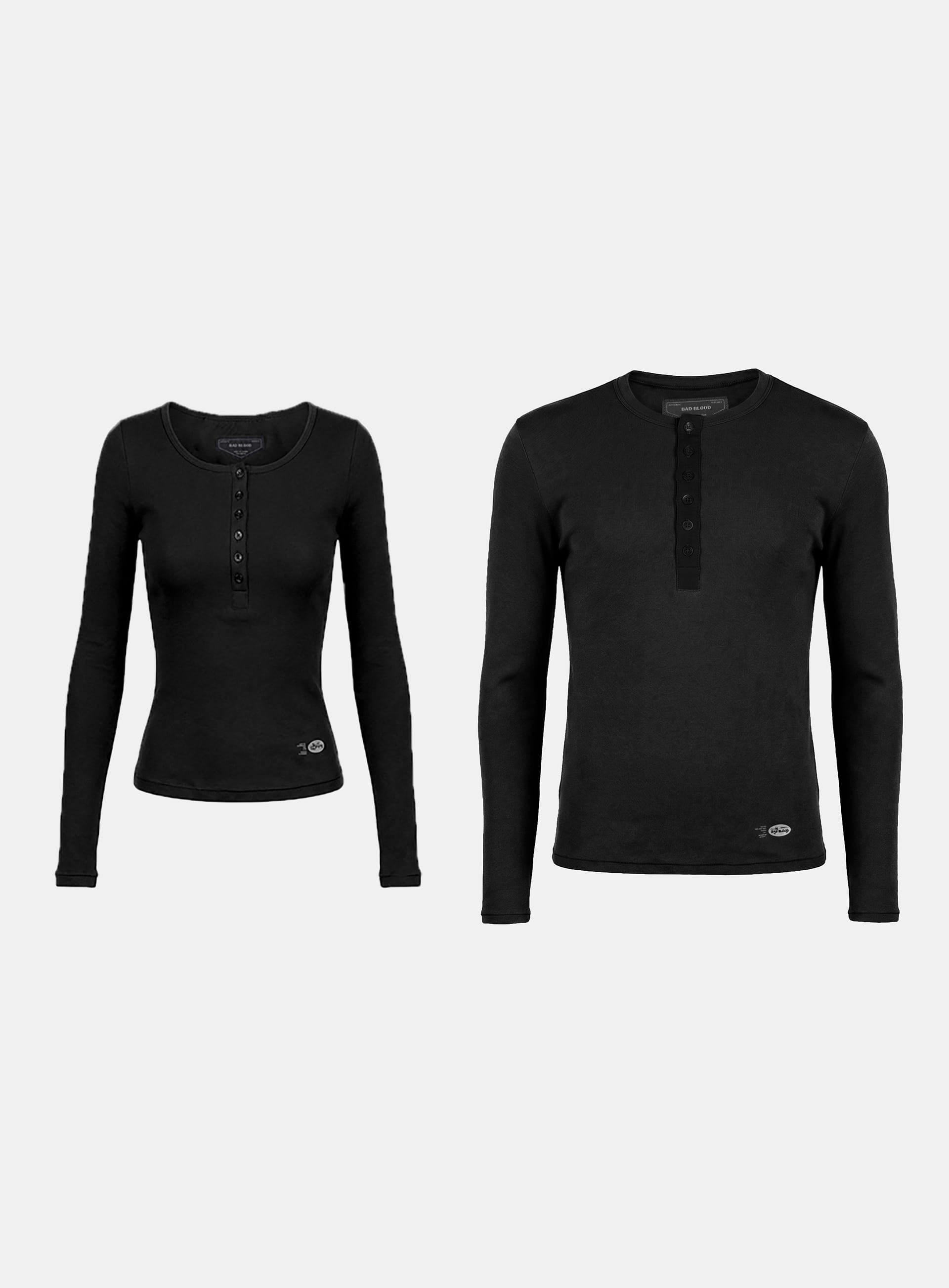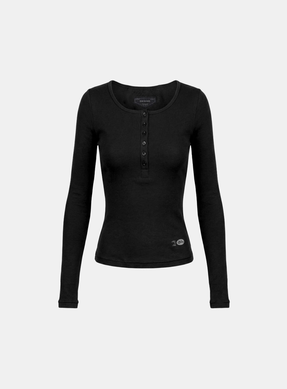 [w-tee26-044] BS Cotton Jersey Fitted Henley Neck Long Sleeve T-Shirt - Black