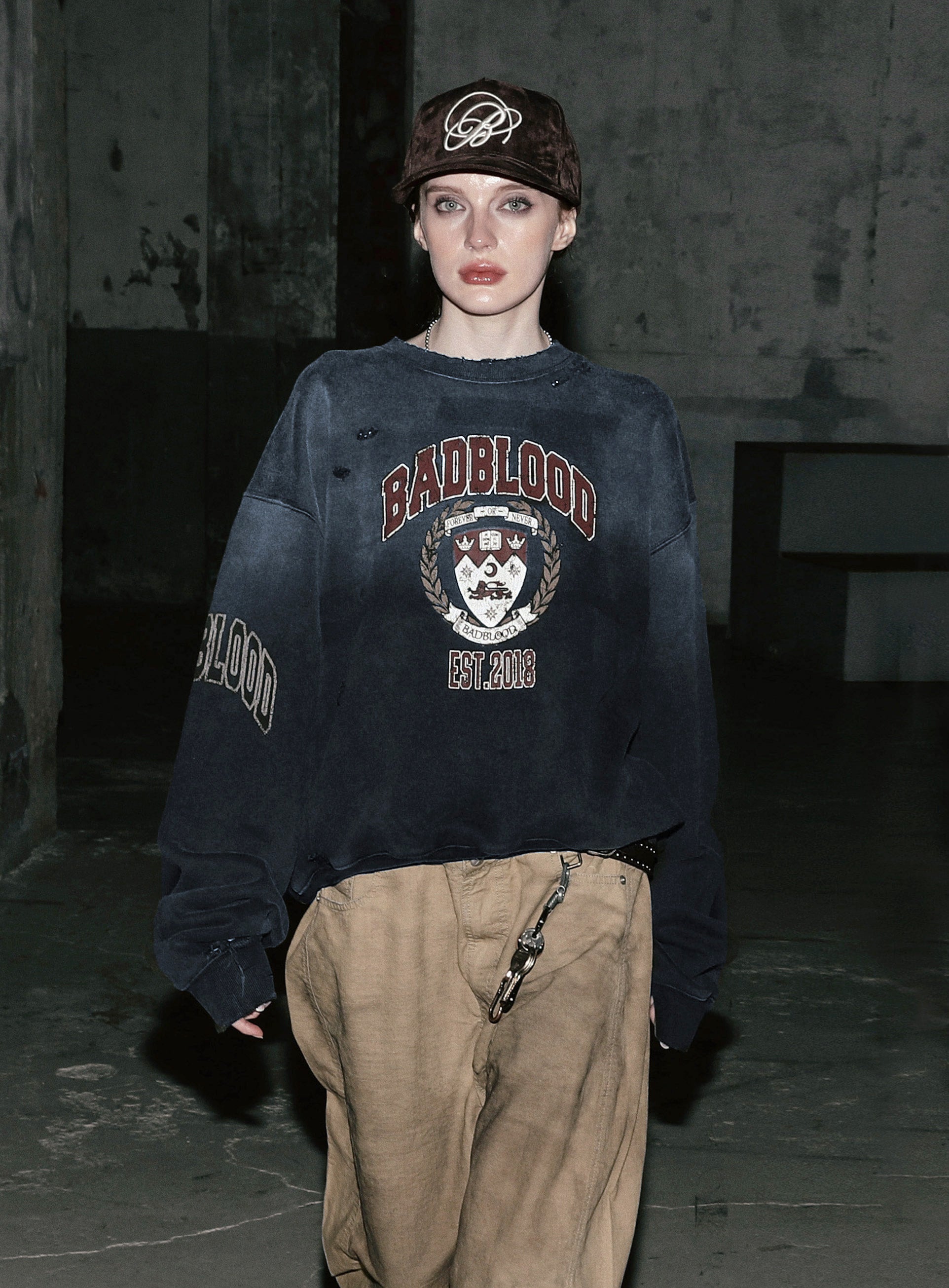 前方印有BadBlood月桂樹徽章標誌,袖子印有BadBlood字母標誌。